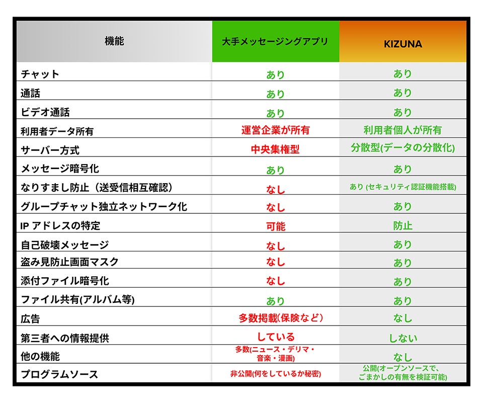 このような状況下、SNSやWebサービスにおいてそのすべてを、外国製品に依存していて良いものか疑問です。SNSやWebサービスが通信システムの一端を担う以上、安全保障と個人情報の漏洩防止の観点から我々が「国産アプリ」にこだわる理由はここにあります。