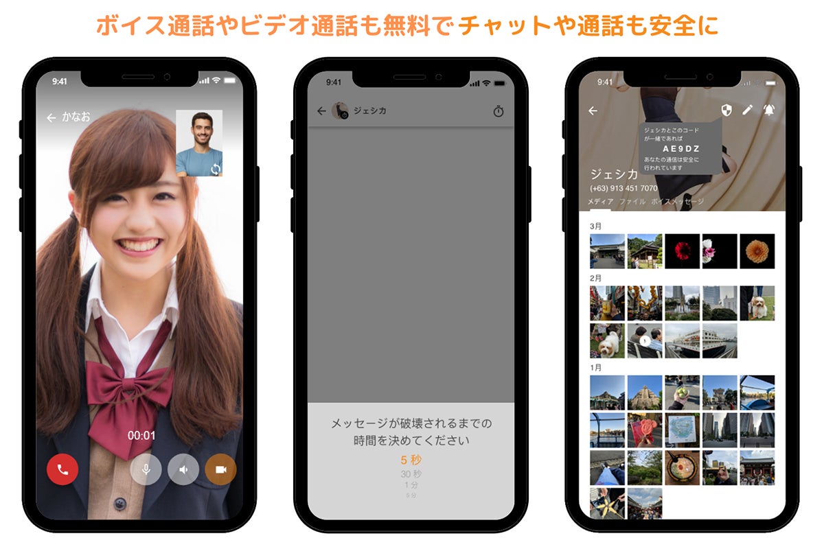 ・通信、通話の暗号化送信に限らず添付ファイルも暗号化可能
