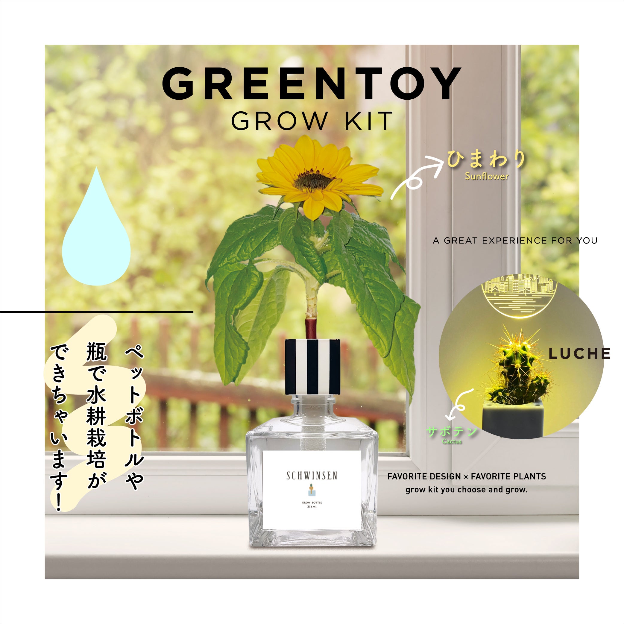 グリーントイはペットボトルと瓶で水耕栽培が出来る栽培キットです。