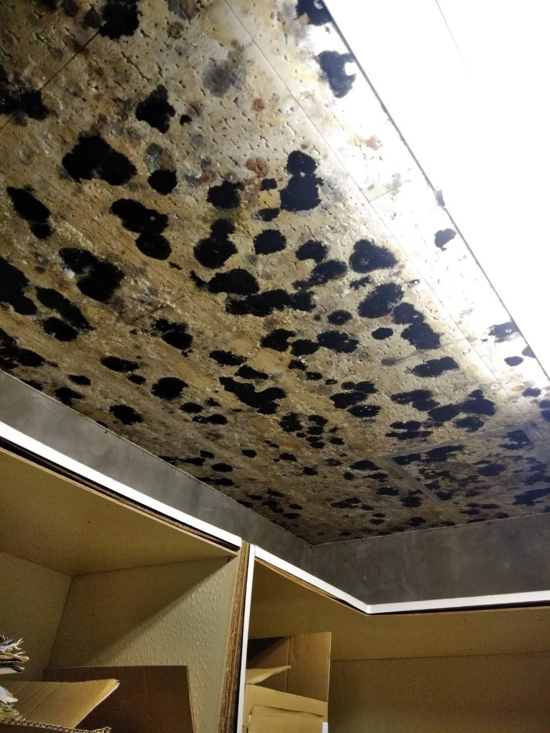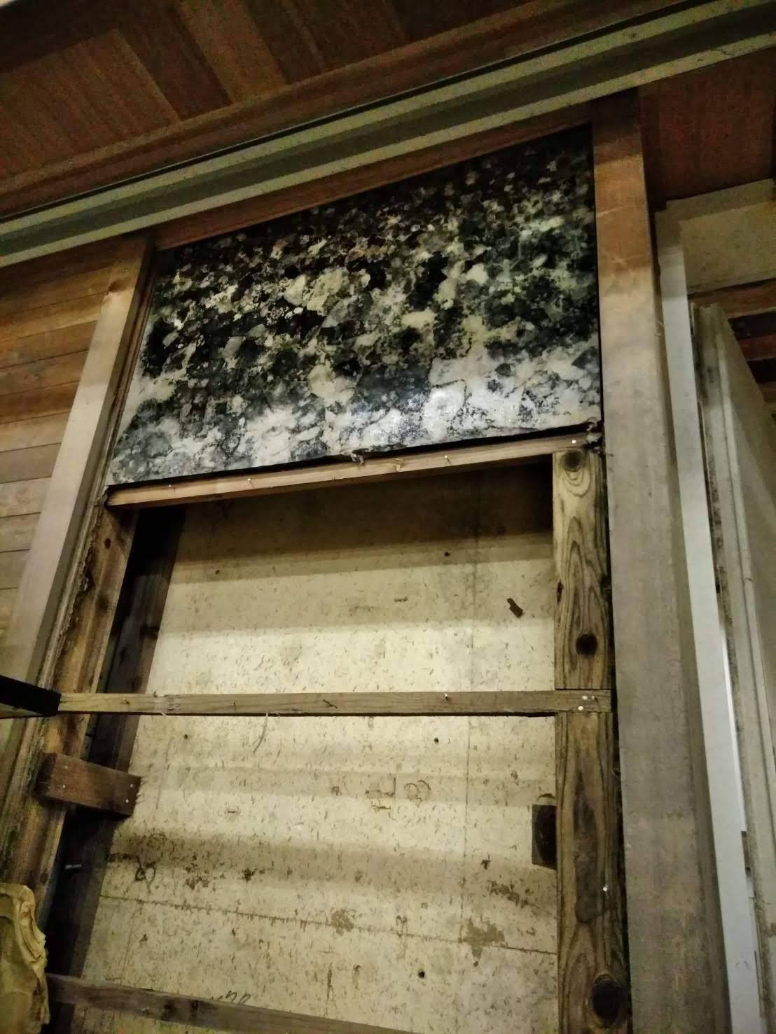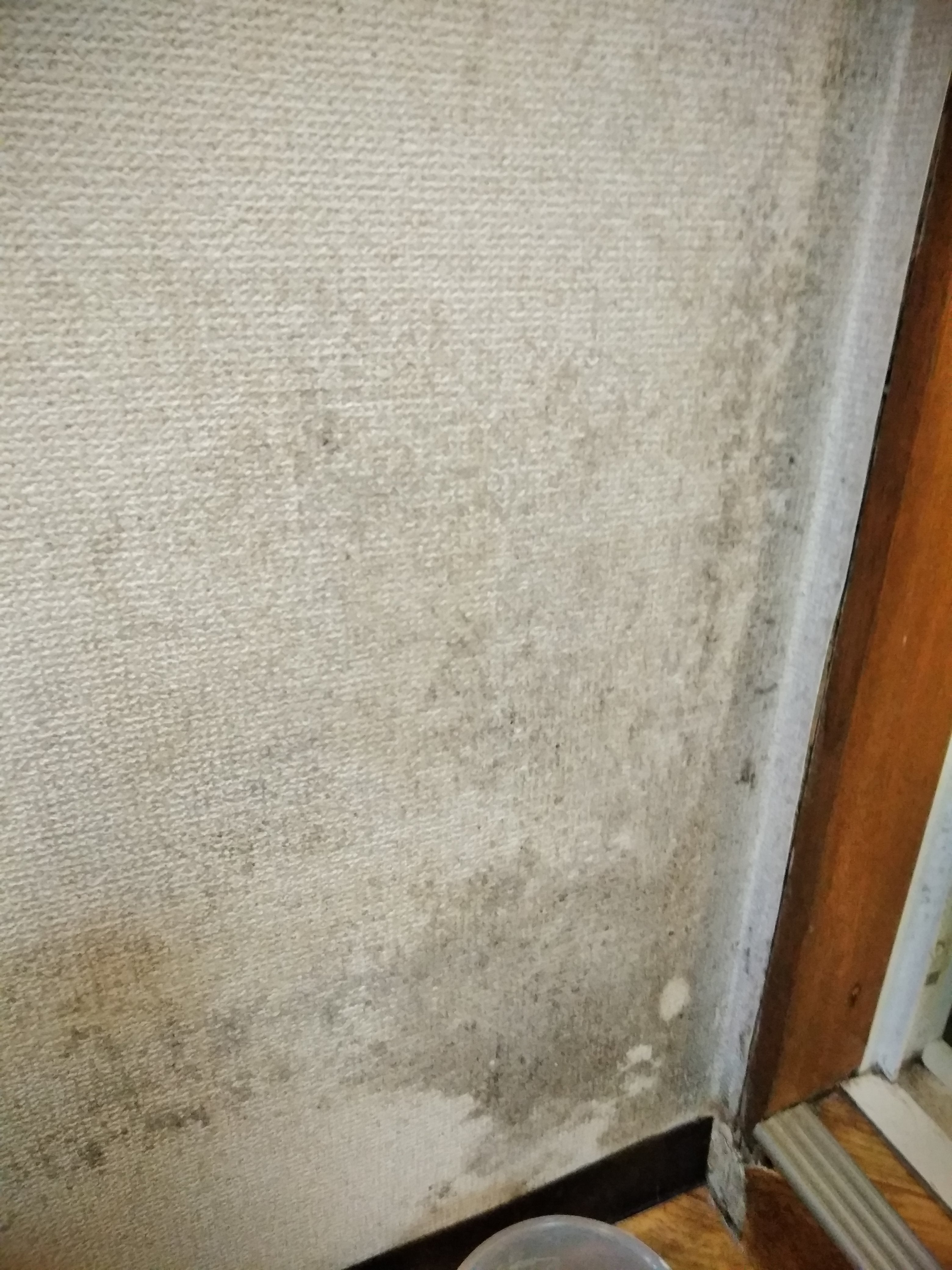 上の写真は東京・神奈川を流れる多摩川が氾濫した時の水害によって発生したカビ被害です。