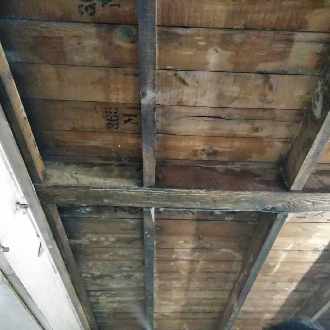 天井裏に発生した黒カビ群です。。柄ではありません。カビ臭いもさることながら空気中を浮遊するカビや菌の臭いは半端なものではなく呼吸もできません。。