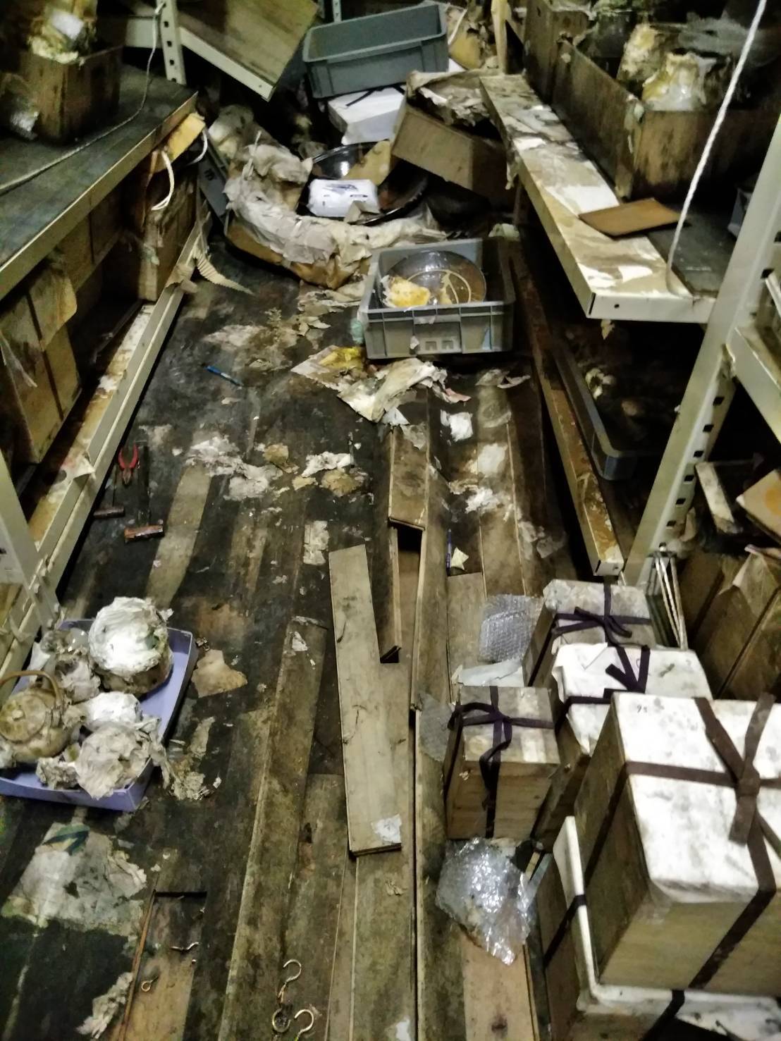 水が引いてその次に襲ったのが想像を絶するカビ被害でした。上の写真は美術館です。原型を止められた収蔵物は一夜にしてカビだらけになります。