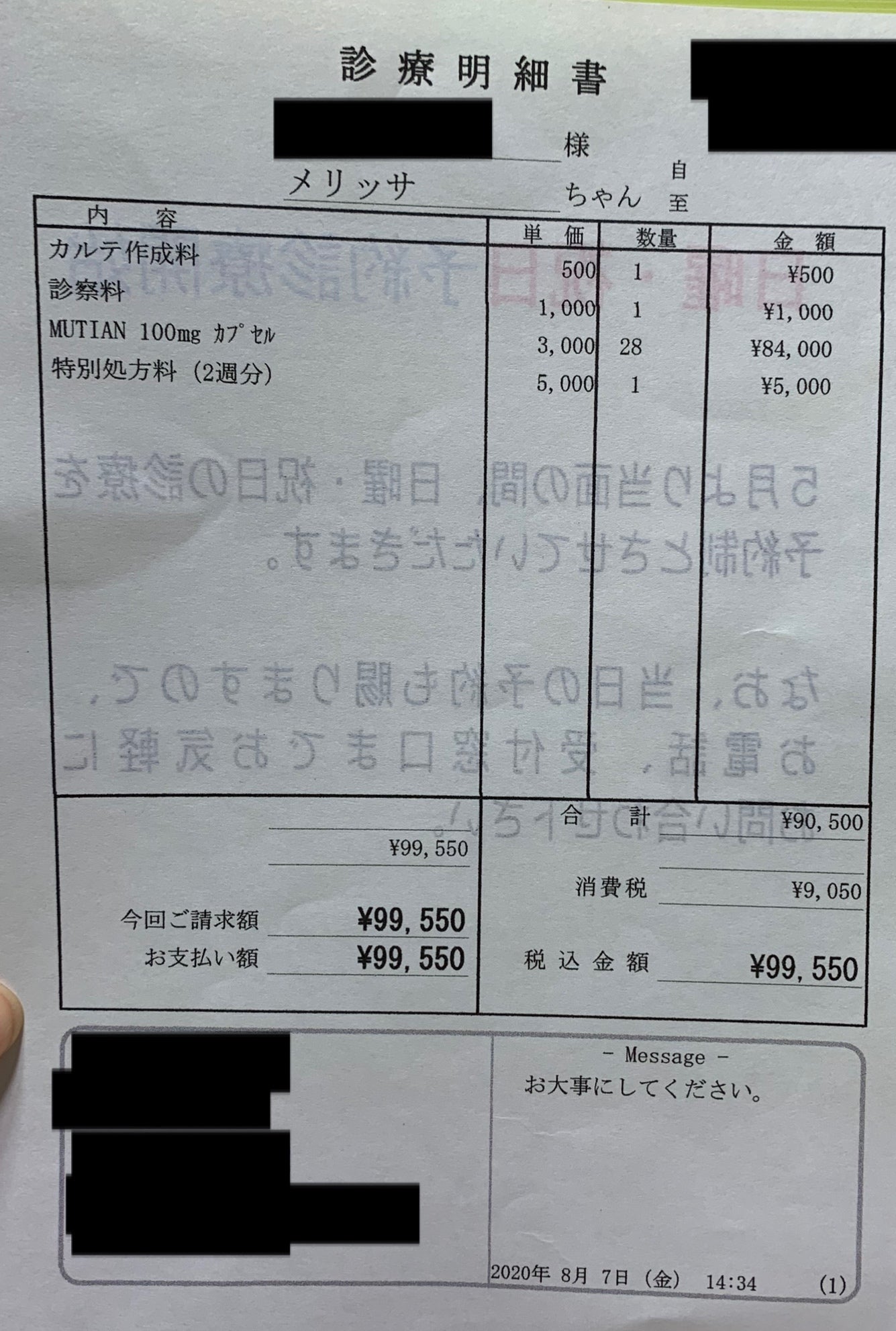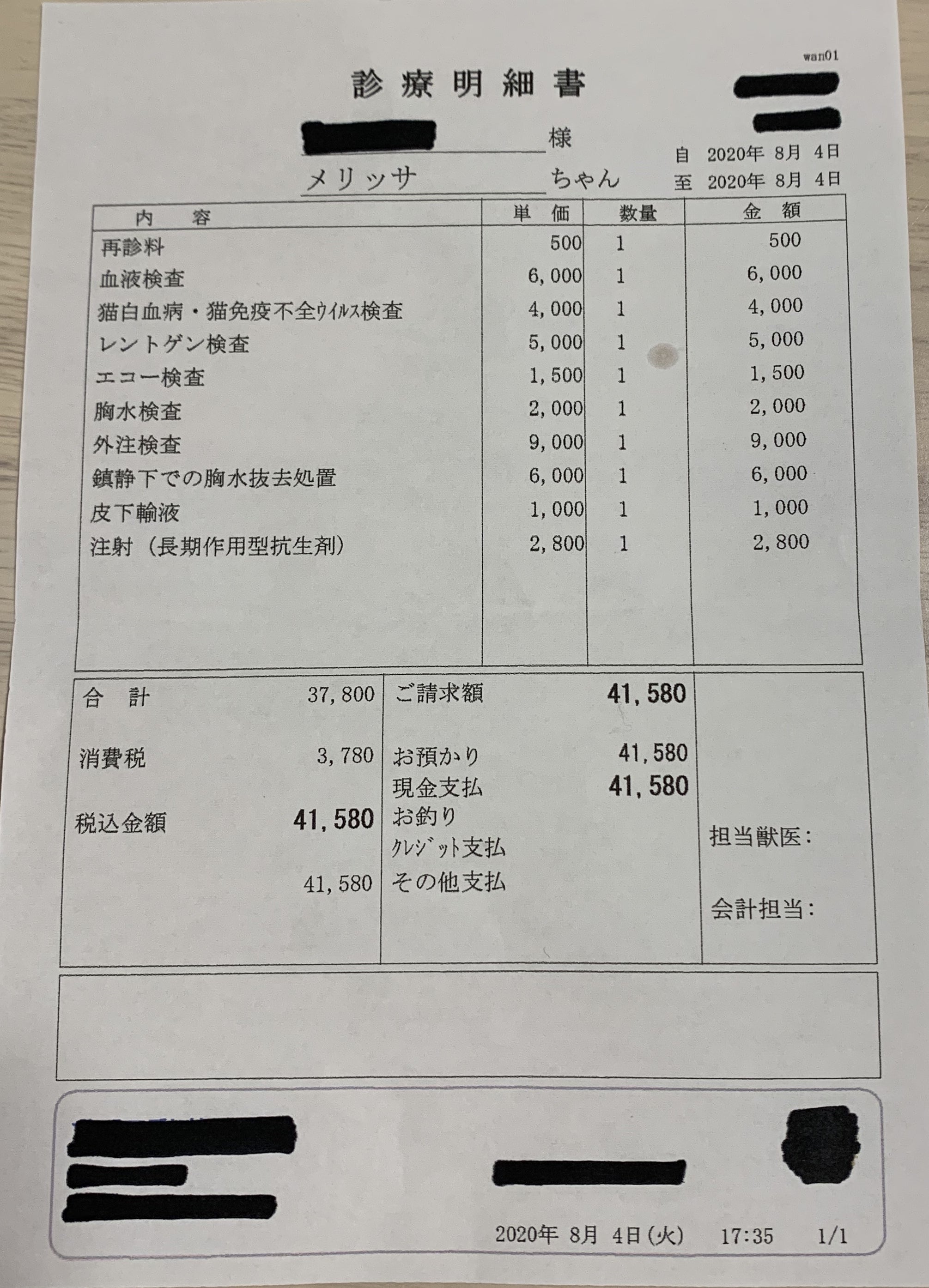 全額メリッサの治療費になります。