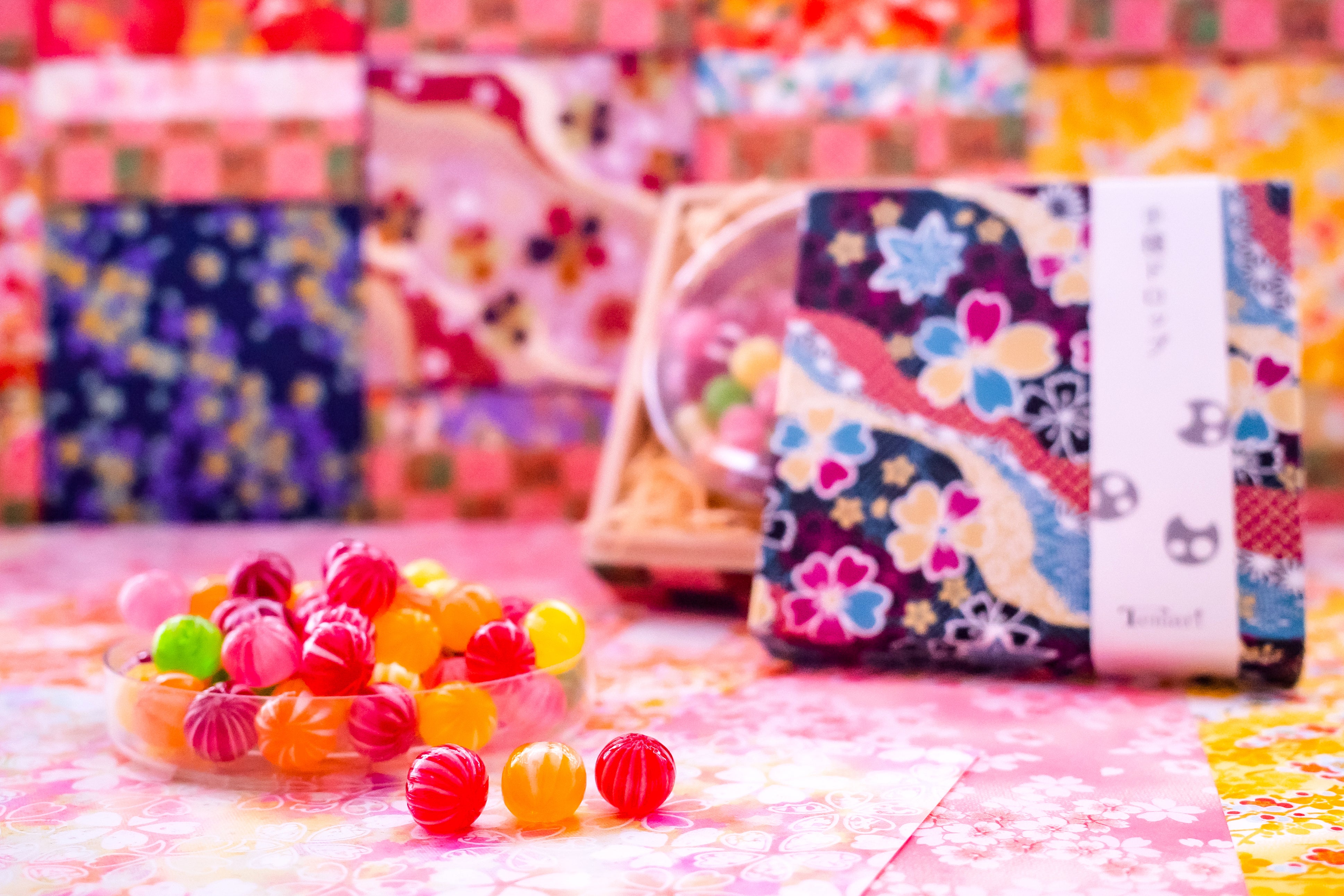 リターン品にもあります、「手毬ドロップ」は京都の老舗飴メーカー様に協力していただいて仕上げたドロップ飴です。