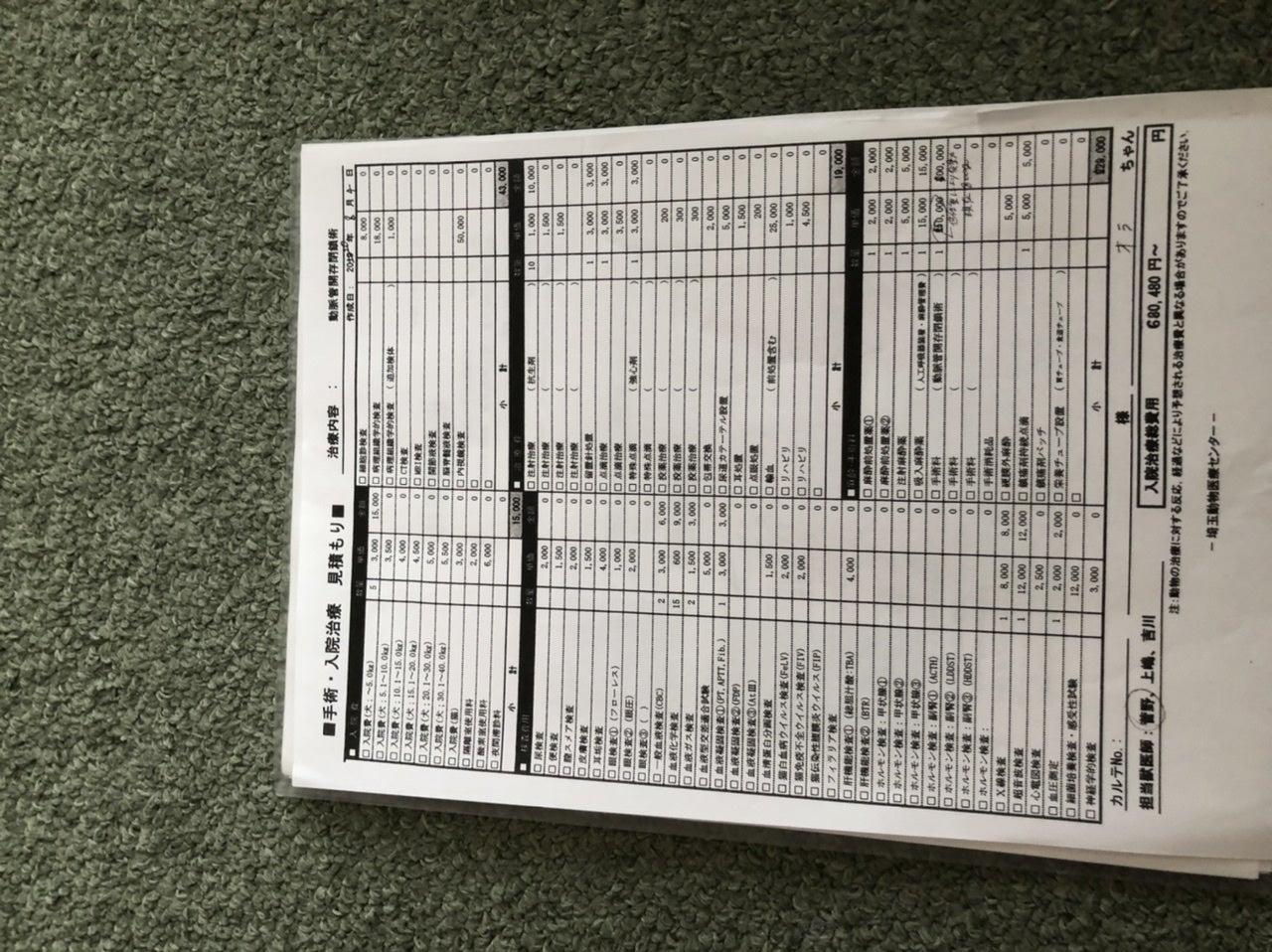 オラの手術代68万480円、お薬代・検査代2万2924円、今後術前検査費、術後検診費、お薬代。CAMPFIRE掲載手数料・決済手数料:約15万3000円+税金。