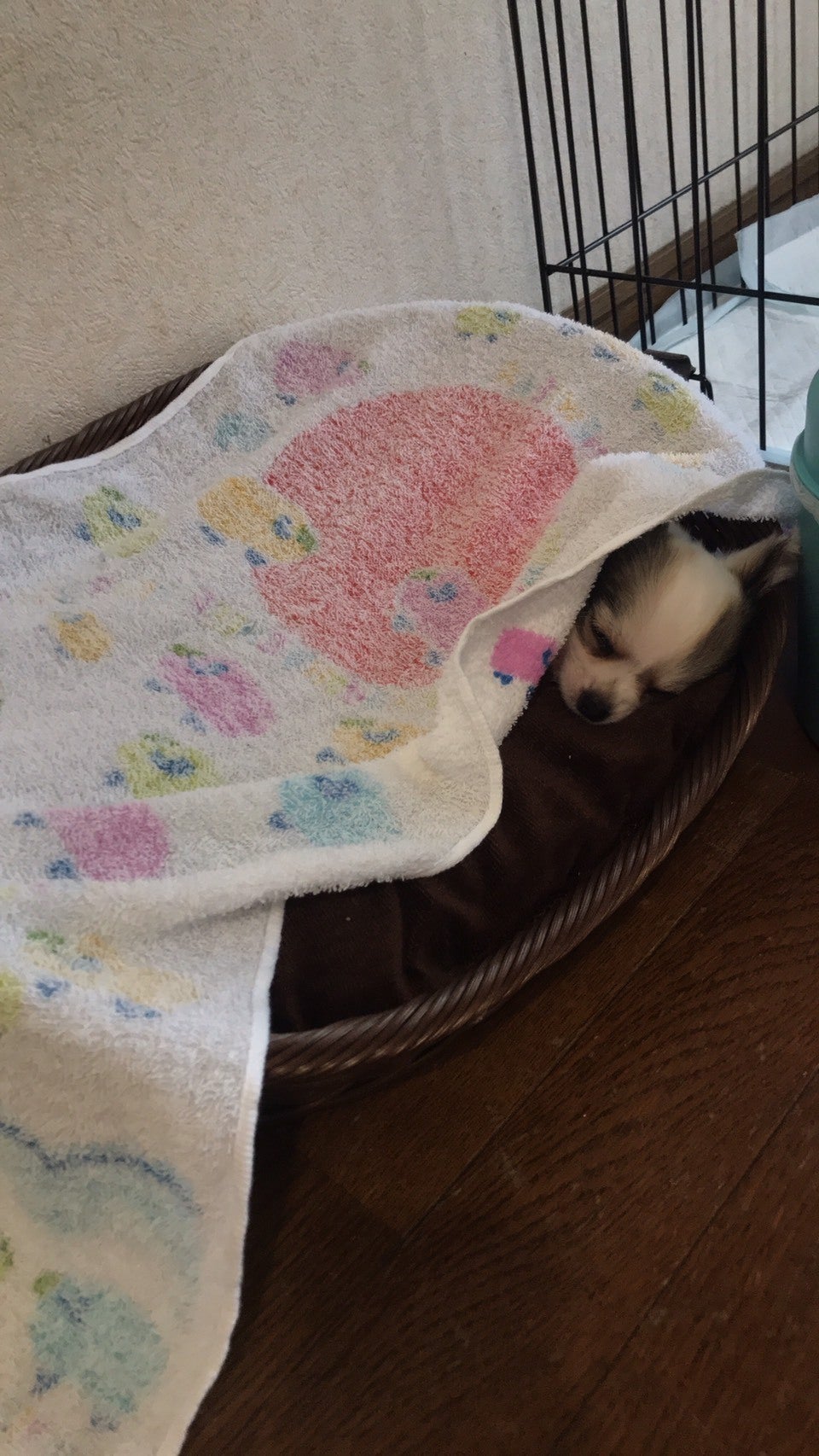 2020/08/29 17:39本日術部の糸を抜糸しました!病院まで往復2時間弱大人しく過ごしてくれてとても助かりました!抜糸前の写真です。抜糸後の舐め防止で服を着たまま寝てしまい、写真は後日載せさせて頂きます。病院ではキョロキョロと周りを興味深く観察していました。今日は、抜糸と2回目の予防接種をしました、少しまだ心雑音があるとのことで1ヵ月検診まで体調悪い時は連絡をとの事でした。左目に目やにが多く目薬処方となりました。無事にここまで来れたのも皆さまがご支援、ご協力頂いたおかげです。ありがとうございます。今後も治療に専念していきます、ご協力頂きましたがオラの治療費が前回のご協力頂いた分では目標に行かず、再チャレンジさせて頂こうと再申請中です、今後も拡散のご協力頂けたら幸いです。よろしくお願いします。 もっと見る