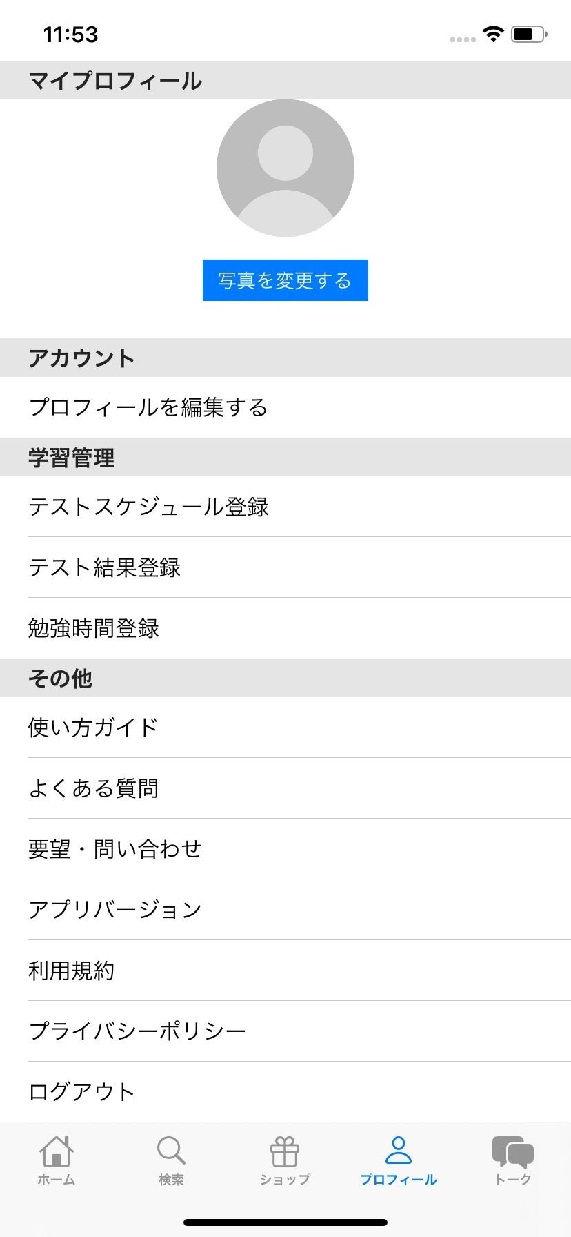 学習管理やテストの結果は、プロフィールからサクッと登録。