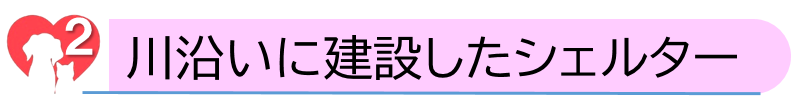 昨年春に、3年半過ごした旧シェルターを立ち退くことになり、新シェルターを建設する場所を探しました。しかし「鳴き声がうるさいのでは」「悪臭がするのでは」といったあまり根拠のない理由で、シェルター建設を受け入れてくれる地域はなかなか見つからず、知人や不動産屋を通してようやく見つけた土地は、いずれも市街化調整区域で市の建築許可が下りませんでした。そこでやむなく川沿いのこの土地に決め・・・という経緯がありました。