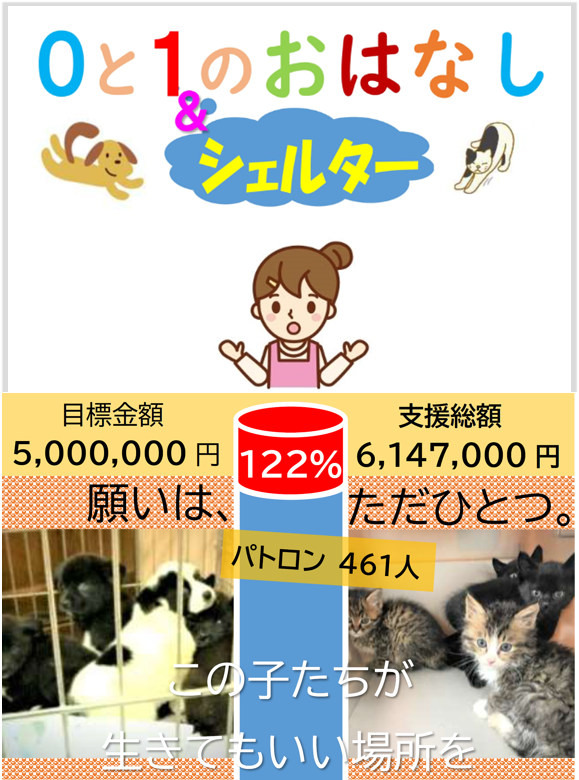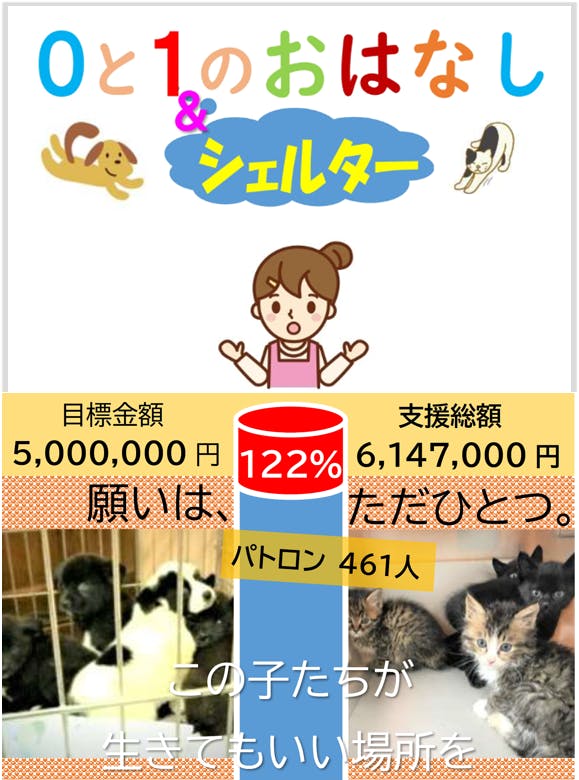 *NPO法人青い鳥動物愛護会は昨年6~8月に、CAMPFIRE様及びGoodmorning様に掲載させて頂き、皆様の温かいご支援を受けて募集額500万円を超える122%の資金を獲得することが出来ました。