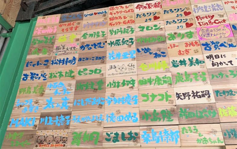 どの木レンガにも、皆様の温かいお気持ちが手描きで記されていました。