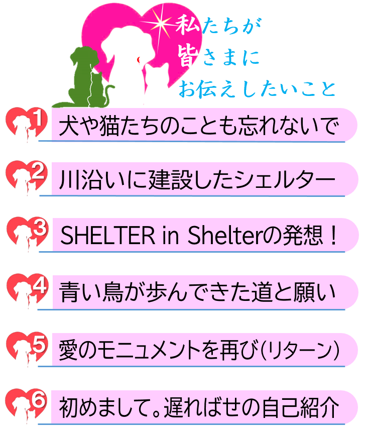 青い鳥は非営利のNPO団体で、皆さんが欲しくなるような魅力的な「モノ」は何も持っていません。でも私たちはシェルターを完成させることで「たくさんの犬猫の命を救い、生きる場所を用意する」ことが出来ます。それこそが私たちにできるご支援者様たちへの最大のリターンです。