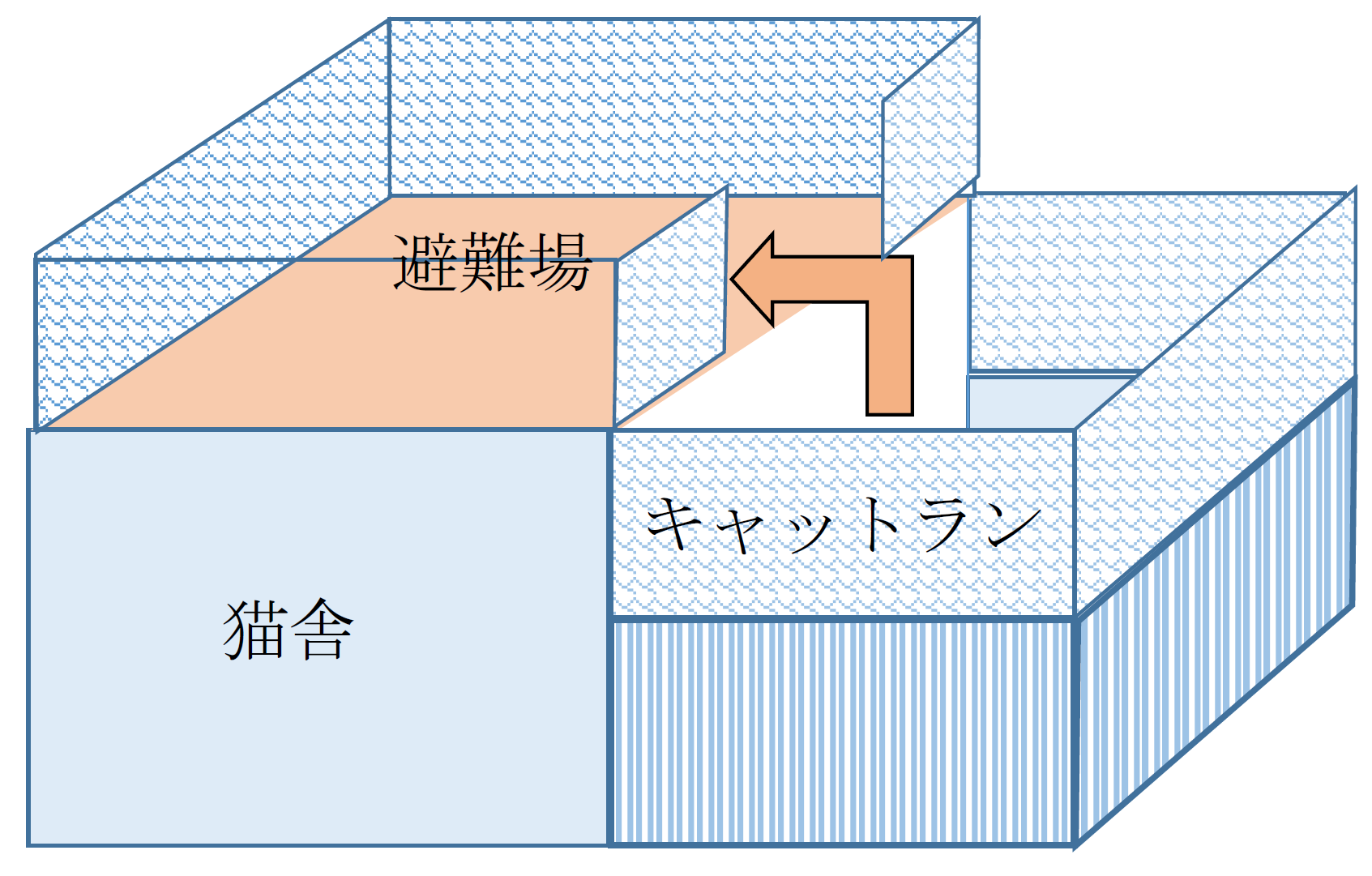 が、その場合も周囲をフェンスで囲わなければならないことや、雨風の吹きつける中で車の流れを気にしつつ犬に道路を横断させるのは危険ですし、交通の迷惑をかけることにもなるので、それも現実的ではありません。そこで犬猫たちの命をどう守ろうか・・・とあれこれ頭を悩ましていたところ、内部から素晴らしい提案がありました。