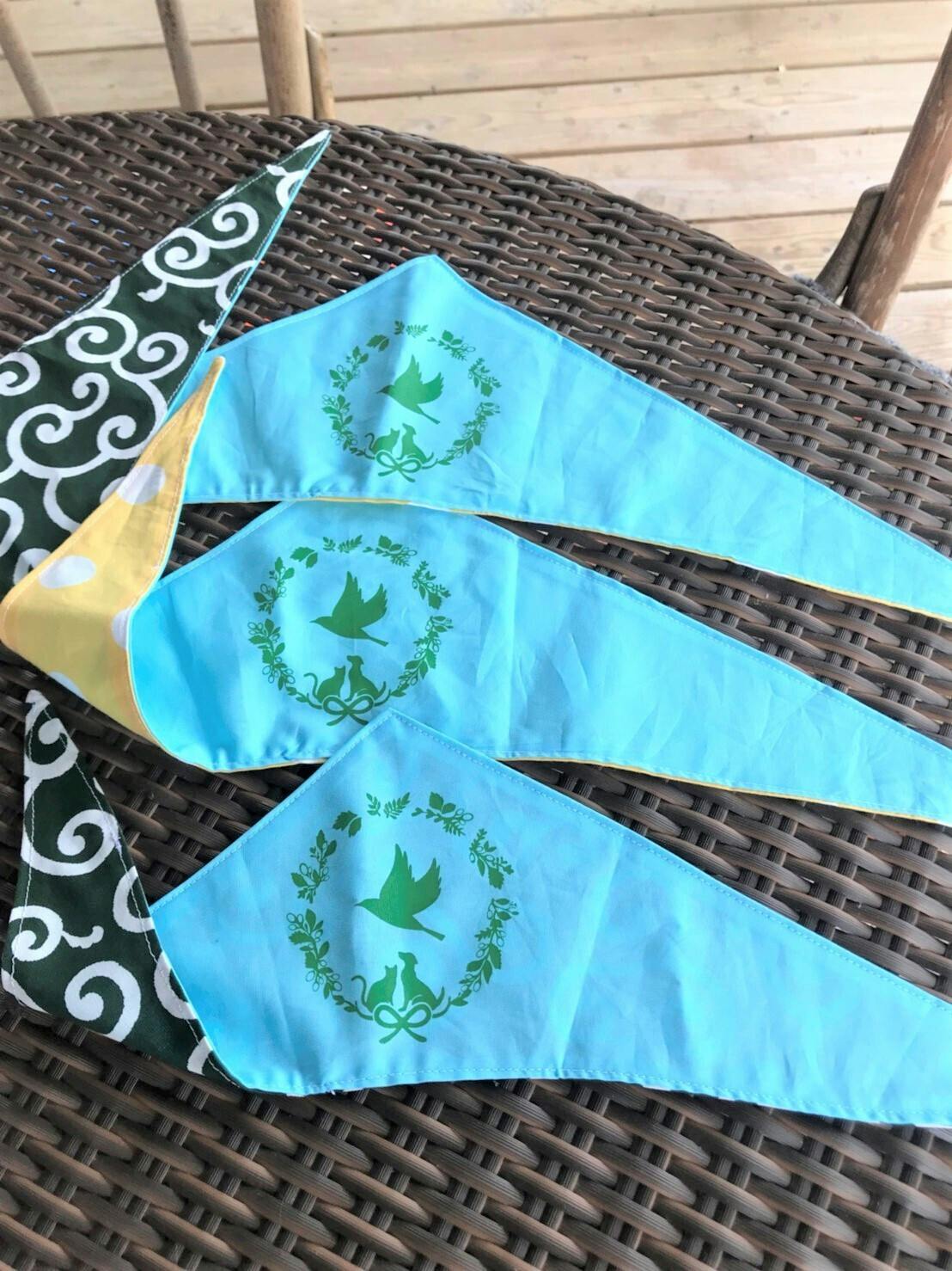 青い鳥のロゴ入りのバンダナ(小・中・大の3つお送りします)