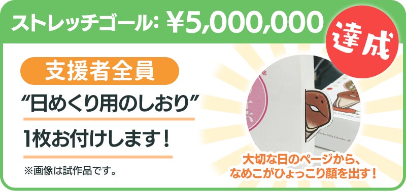 支援総額500万円達成で、支援者全員にプラン1口につき1枚「日めくり用のしおり」をお付けします。