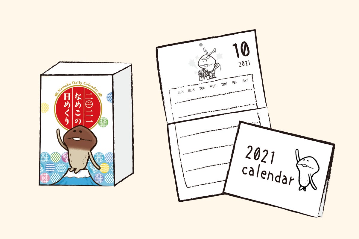 「リアルなめこ 初めてのグッズ化プロジェクト」で好評だった壁掛けカレンダーの2021年版です。