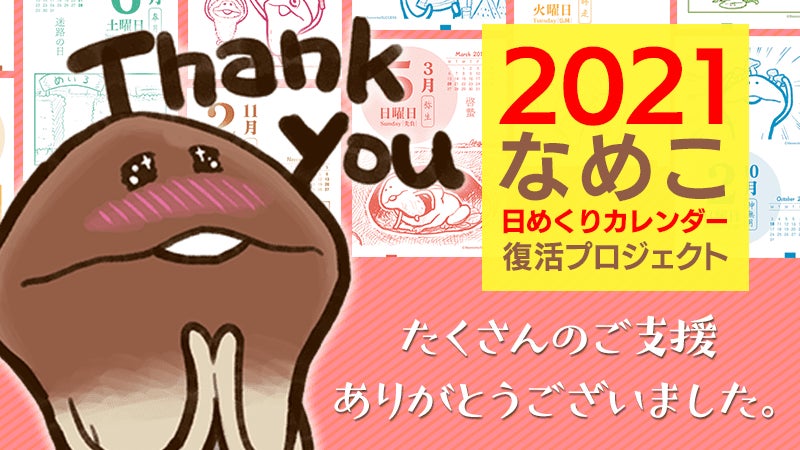 なめこプロジェクトが年間アワードにノミネートされました!2020年にCAMPFIREで実施されたクラファンプロジェクトの中から優秀なプロジェクトに送られる「キャンプファイヤー クラウドファンディングアワード2020」において、「2020 なめこ日めくりカレンダー復活プロジェクト」をノミネートしていただきました!!!今年CAMPFIREで実施された1万3000件以上のプロジェクトの中からアワードにノミネートされたのはたったの100件。その中に本プロジェクトが選ばれたことはとても光栄なことだと思います。これもひとえにご支援いただいた皆様ひとりひとりのお陰です。本当にありがとうございます!!Twitterでの一般投票にご協力ください!11月23日(月)23:59までアワードのノミネート発表とともに一般投票もスタートしました。投票はTwitterで行われます。投票受付は11月23日(月)23:59まで投票方法は簡単①アワード特設サイトを開く②アワード特設ページのなめこプロジェクトの「投票する」ボタンを押す③Twitterの投稿画面が開くのでそのままツイートするだけ※投票にはツイッターへのログインが必要です※集計はハッシュタグで行われるのでハッシュタグ部分の文面は変更しないでください※鍵アカウントの投票は対象外となります2019アワードでは皆様の投票のおかげで部門賞を受賞することができました。2年連続での受賞で快挙達成を目指しましょう!!応援よろしくお願いいたします!!ーーーーーーいよいよ11月24日にリターン品の発送が始まります。11月25日以降に順次お手元にお届けできますのでお楽しみに!!※ノミネート初日に間違えて「リアルなめこグッズ化プロジェクト」に活動報告を上げていました・・・ついさっきその間違いに気がついたので一般投票締め切り間近ですがこちらに再掲します(涙)