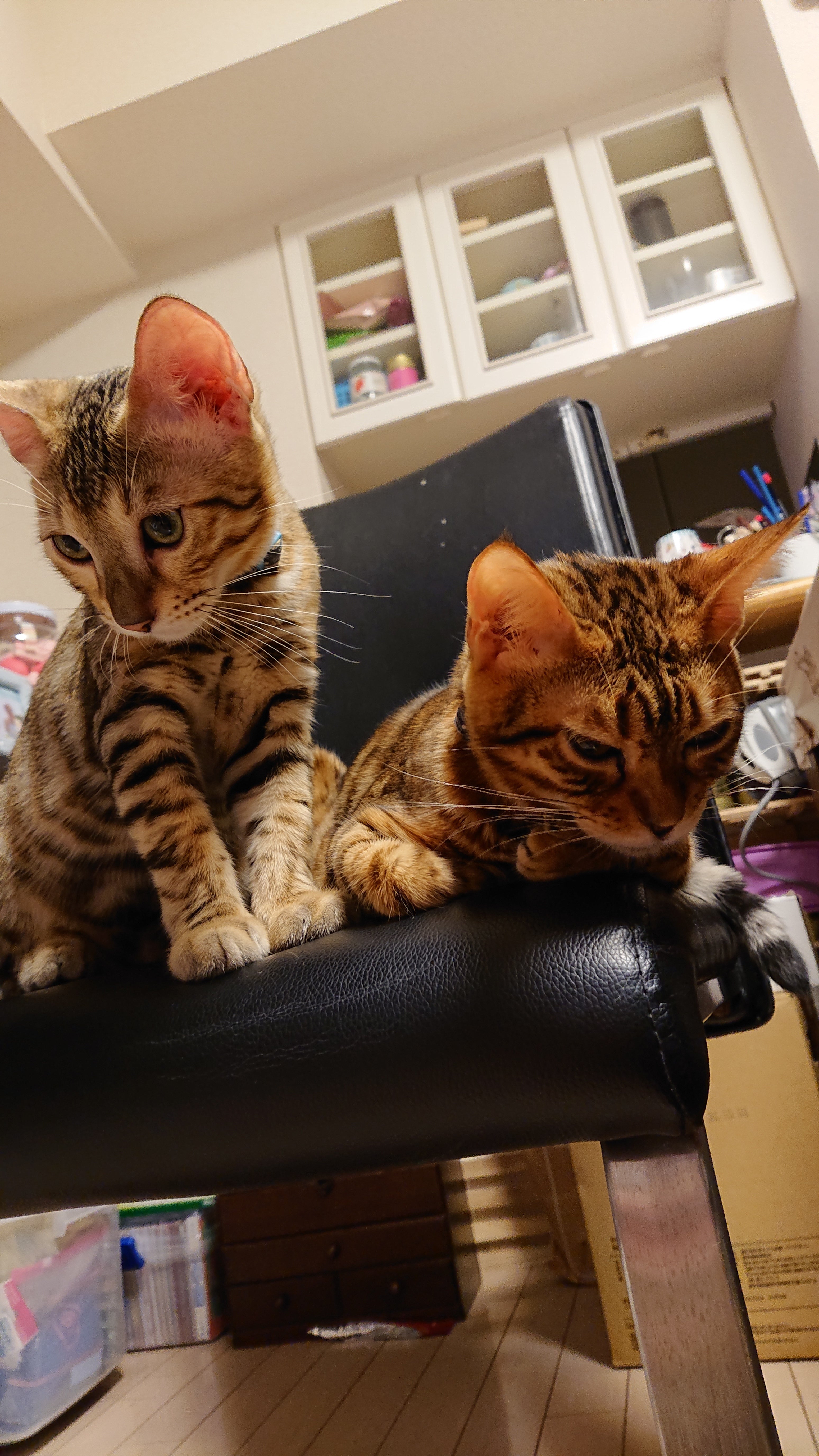 不妊治療を行ってもなかなか子供に恵まれず、お金ばかりが出ていく一方で、気持ちが塞ぎがちになっていた矢先に、独身時代から17年と7ヶ月一緒に過ごし子供のように可愛がっていた愛猫が癌で亡くなってしまい、毎日、毎日、泣く日々を過ごし、笑顔もなくなっていった私を見かねた主人が、私の笑顔を取り戻してあげたいと、「子供を持たせてあげられなくてごめんね。子供かわりにとはいかないけれど、あなたの人生には猫が必要なんだね。」と、今年の誕生日にサプライズでプレゼントしてくれた猫がレオとトワでした。