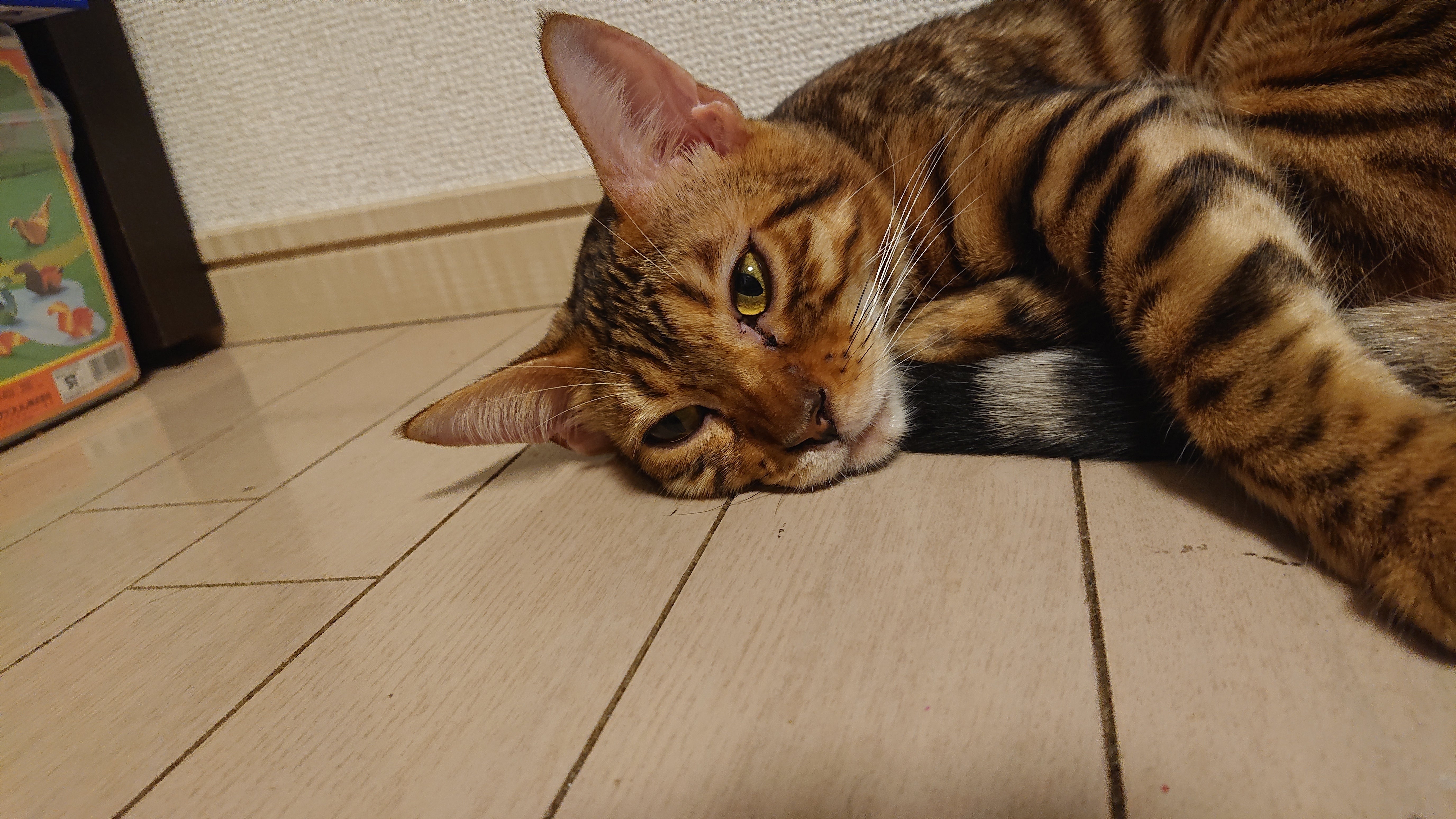 トワと仲良く寝ていたので、間にゴロンと添い寝したら2匹して冷たい視線