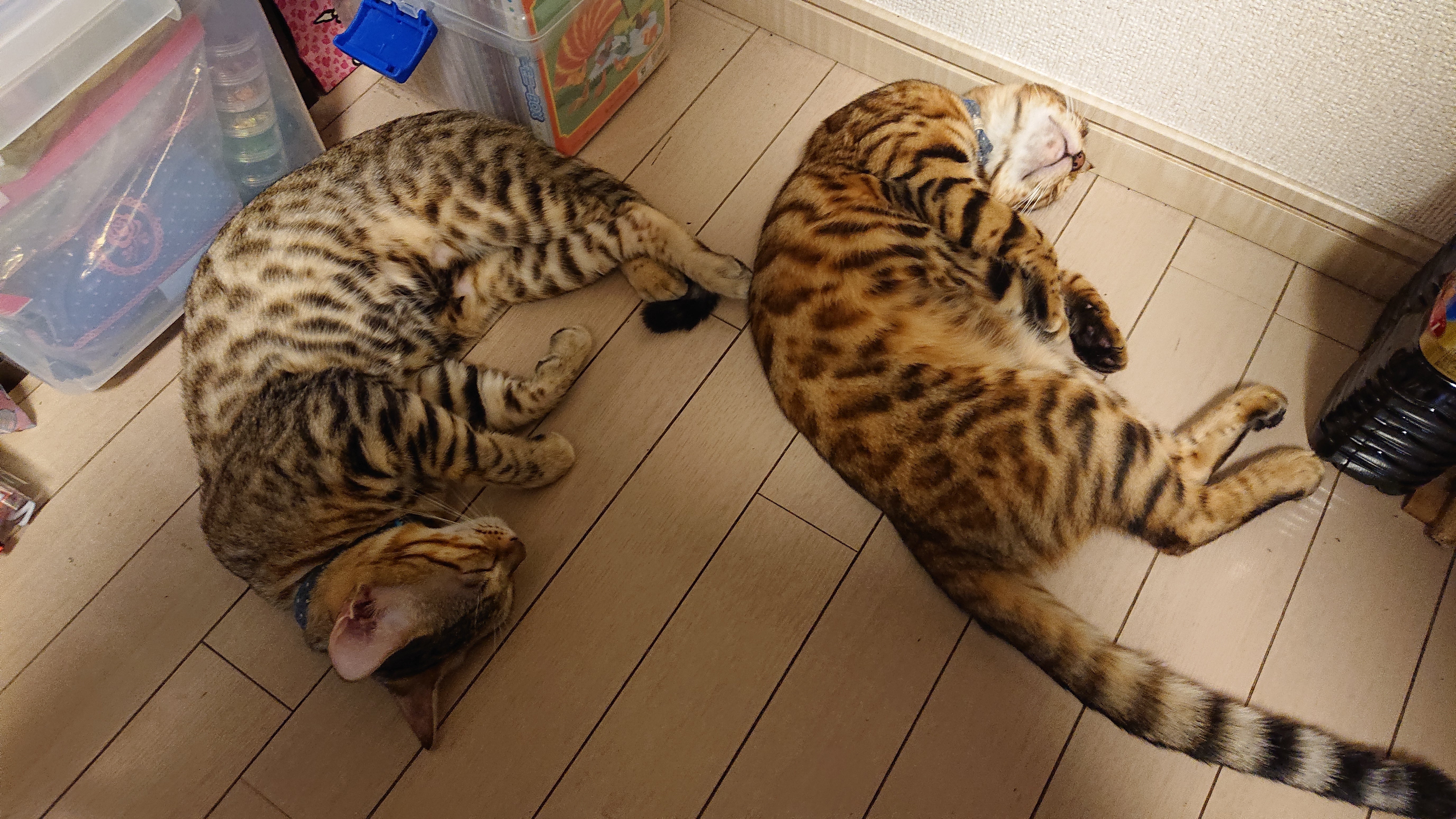 相変わらず、仲良く並んで2匹で寝ている。そして寝相が悪い。けれど、とても愛おしく可愛い。