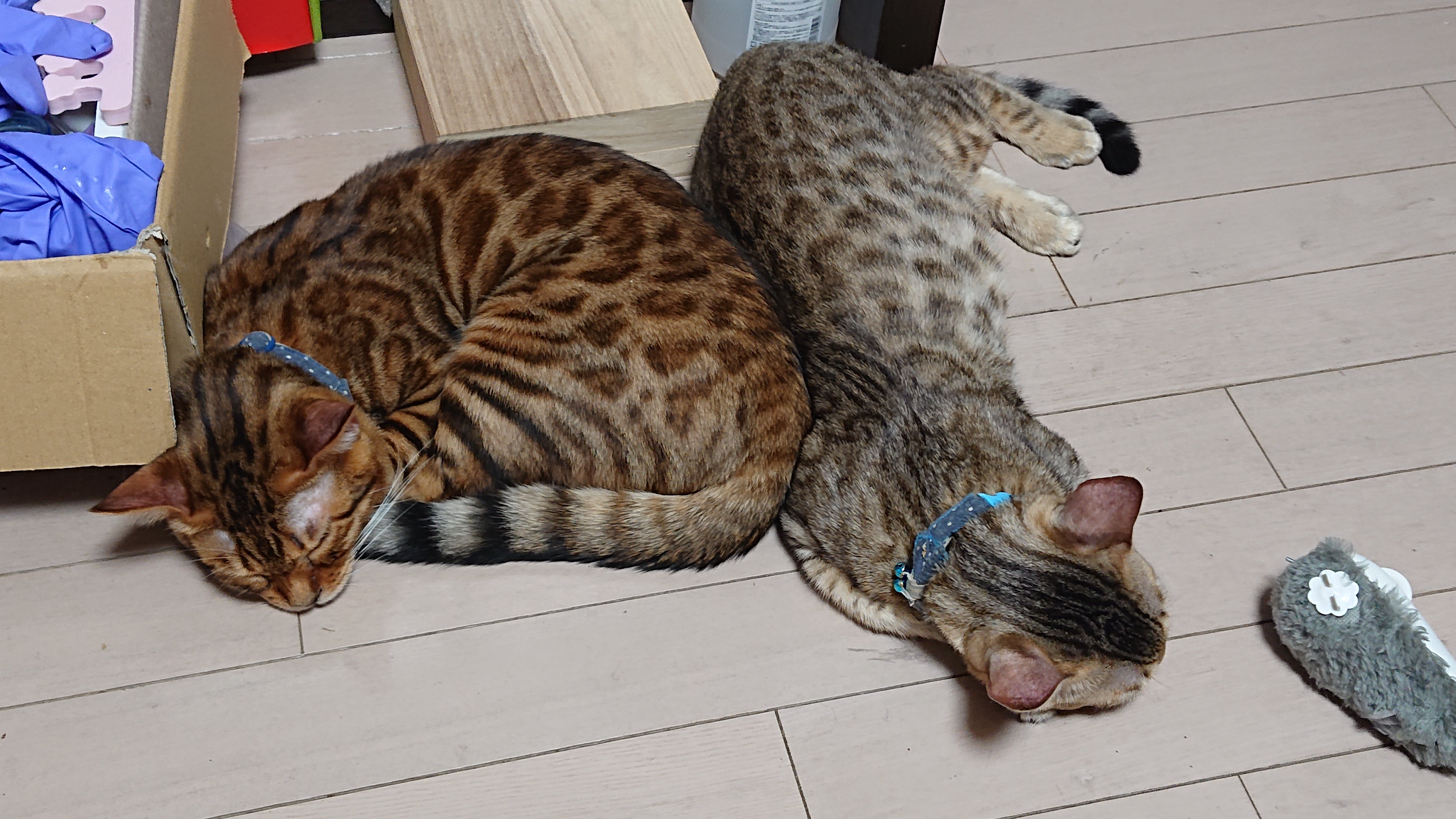 今日も仲良く2匹くっついて寝てました。仕事から帰って来て、息子たちの様子を見てると本当に癒されます。
