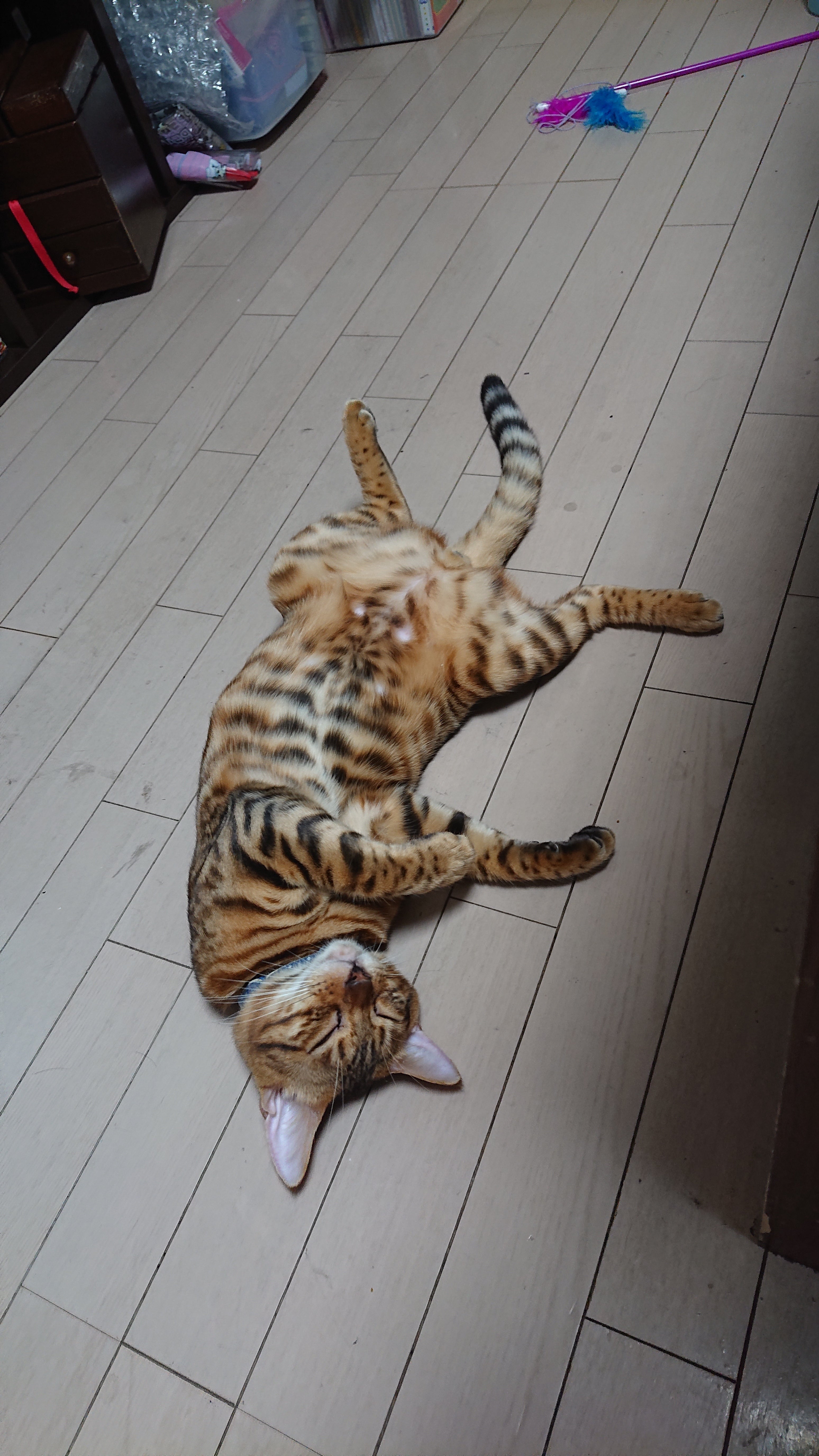 今日は活発と言うより甘えん坊モード炸裂の日でした。トワが帰宅してから、トワを遊びに誘っていましたが、トワはそんな気分ではなくベッドの下へ。そんなトワを察し、私がトワを心配しているのを察したのか、今日は私のストーカーし、お腹を見せながらコロコロ甘えん坊していました。