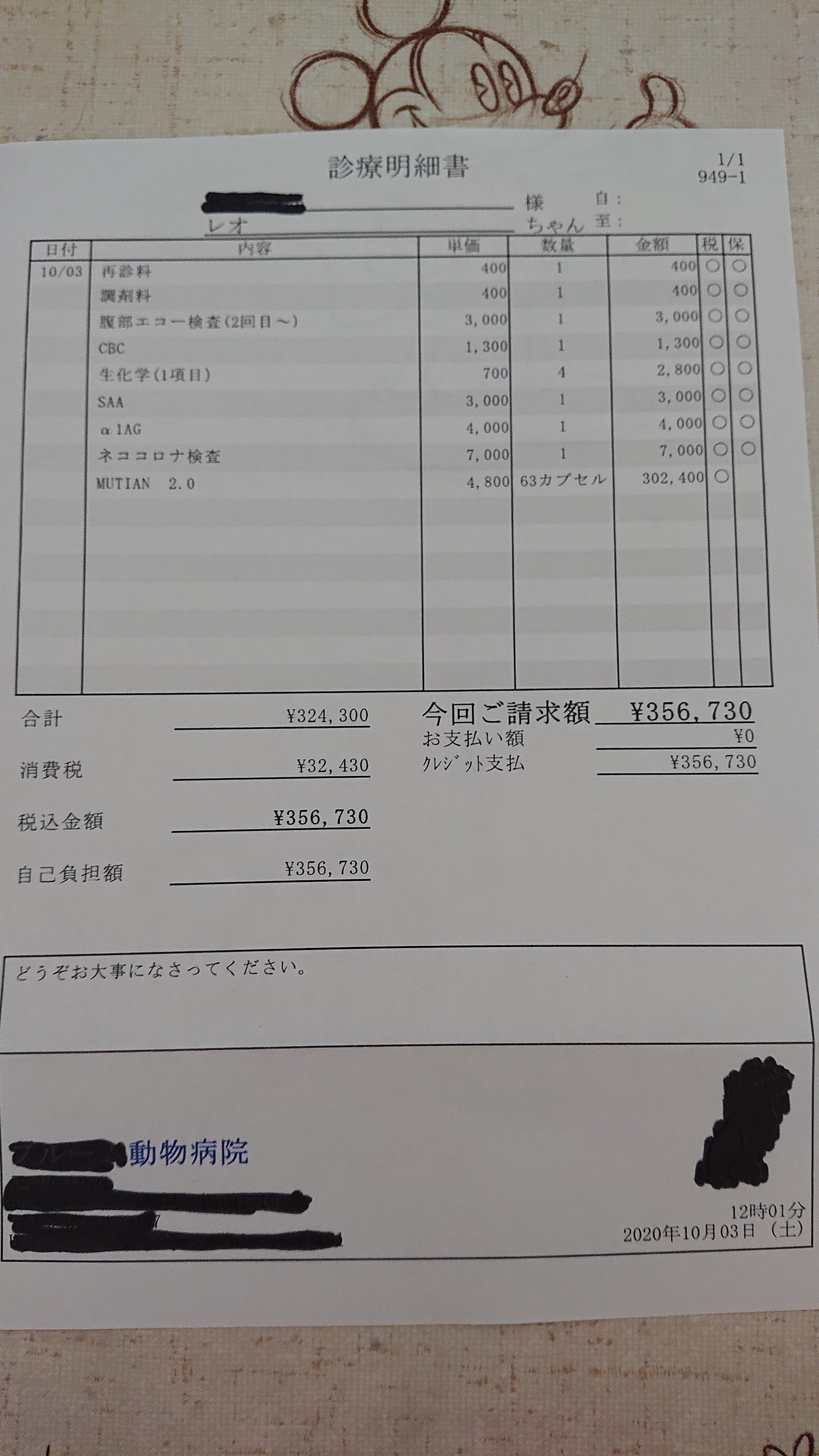 【10/3】動物病院受診