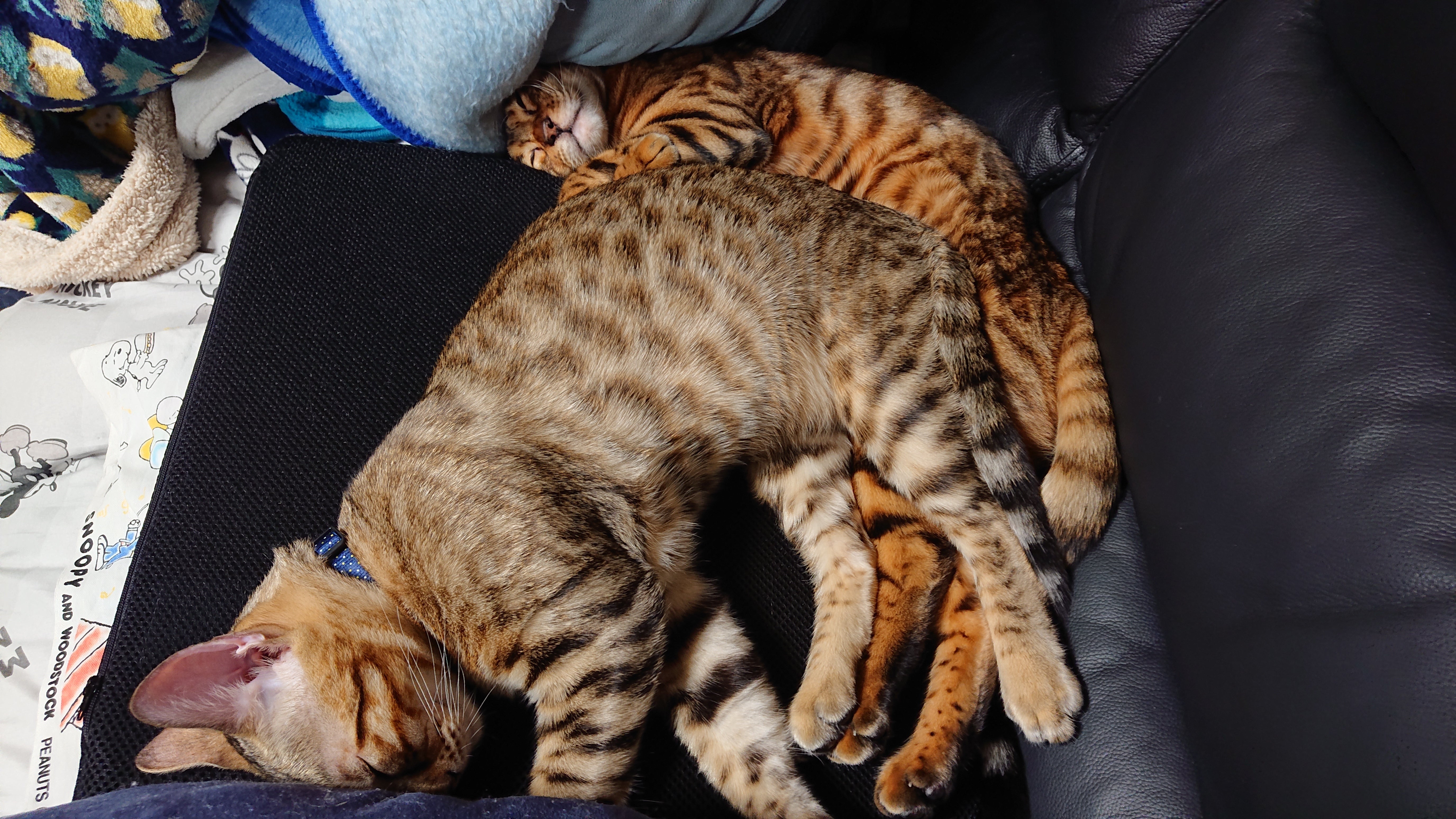 レオは埋もれ、トワはレオに乗っかったままごめんなさいして寝てる姿です。