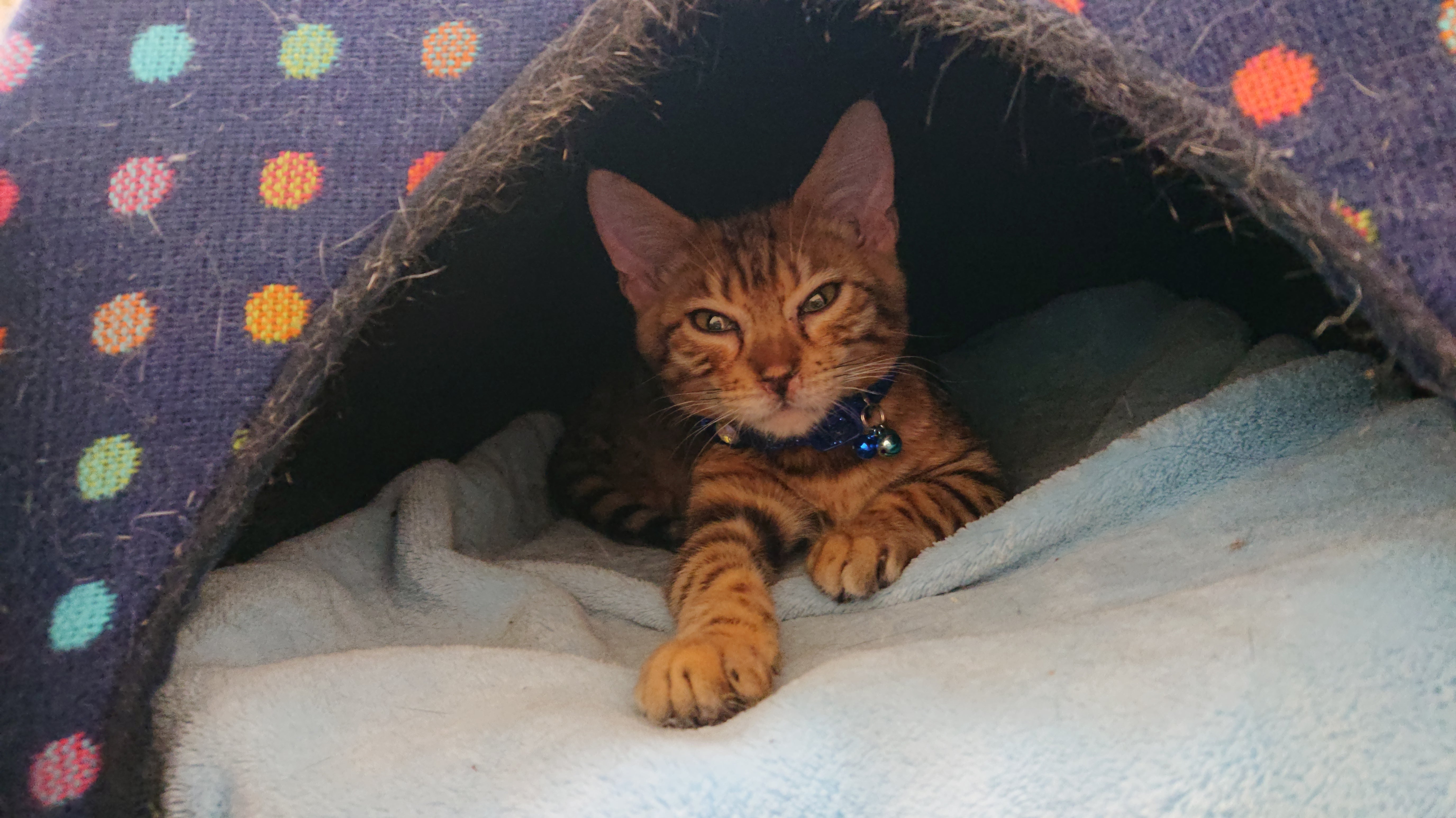 レオは生まれてから身体が弱わかったのか、市場に出す月齢が2ヶ月の頃に下痢などの問題があり、市場に出せず、症状が落ち着いた時にはすでに月齢も生後5ヶ月であったため、訳あり子猫として市場価格より安く譲って頂いた子猫でした。