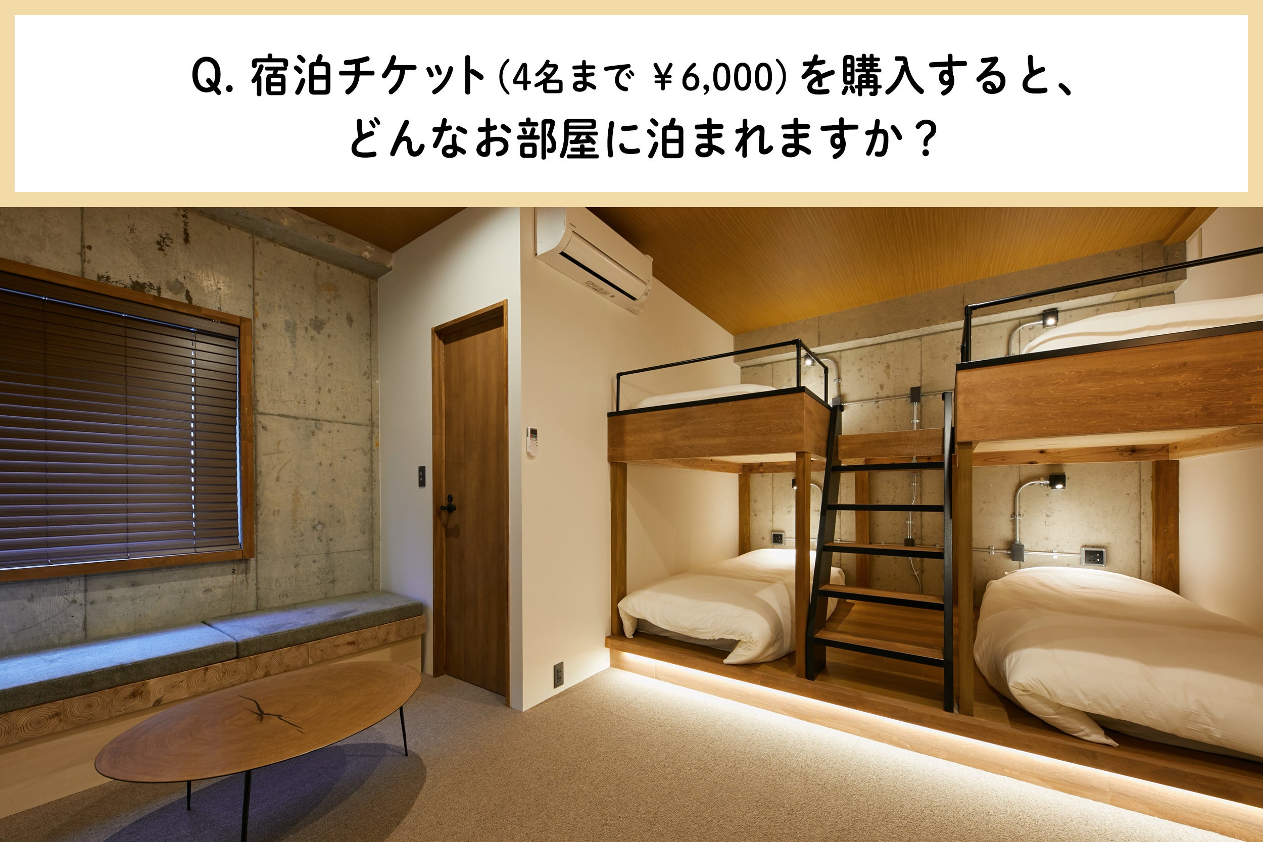 どちらのお部屋も宿泊チケット1枚(¥6,000)で4名様までご宿泊いただけます!