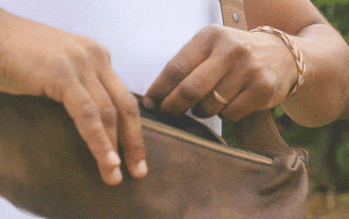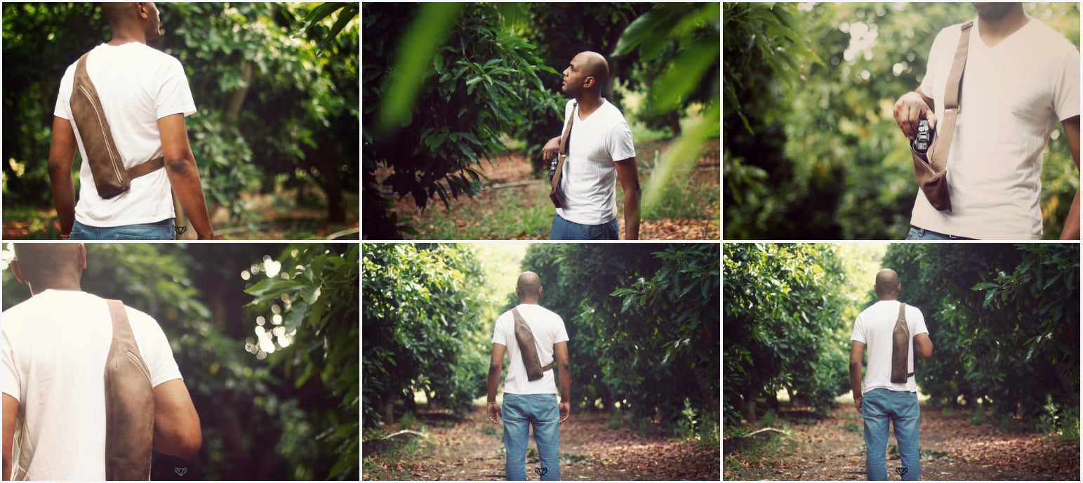 自然の中でレザーバッグVortexが映えるカットとなっております!