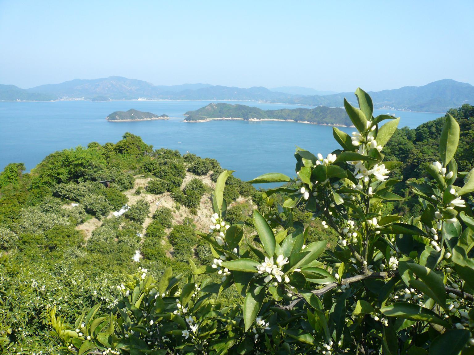 島々を一望できる大崎上島の柑橘畑
