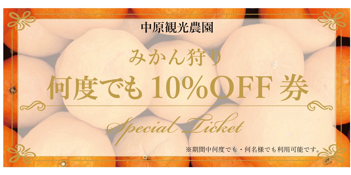 こちらは毎年みかん狩りのシーズンは何度でもお使いいただけます。何名様でお越しいただいても1枚で皆様割引させていただきます。是非お楽しみください!!