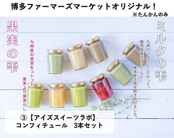 九州産の食のおいしさを、スイーツを通して広めていきたいと、パティシエの岩﨑さんが愛情をこめてつくったコンフィチュールを3本セットでお届けいたします。