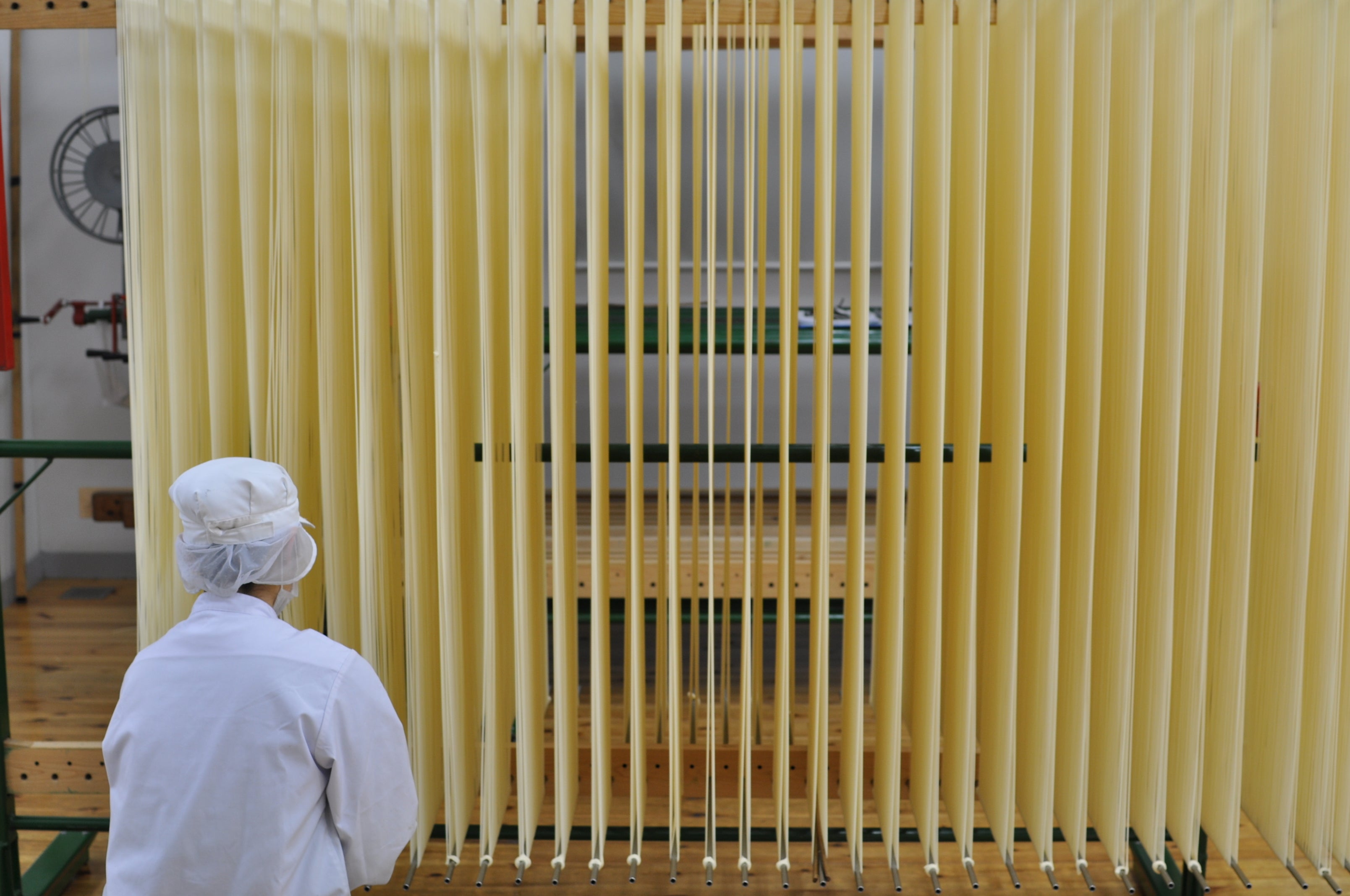 九州産の厳選小麦粉、五島列島特産の椿油、五島近海の塩を原料としているマルマスさんのうどん。