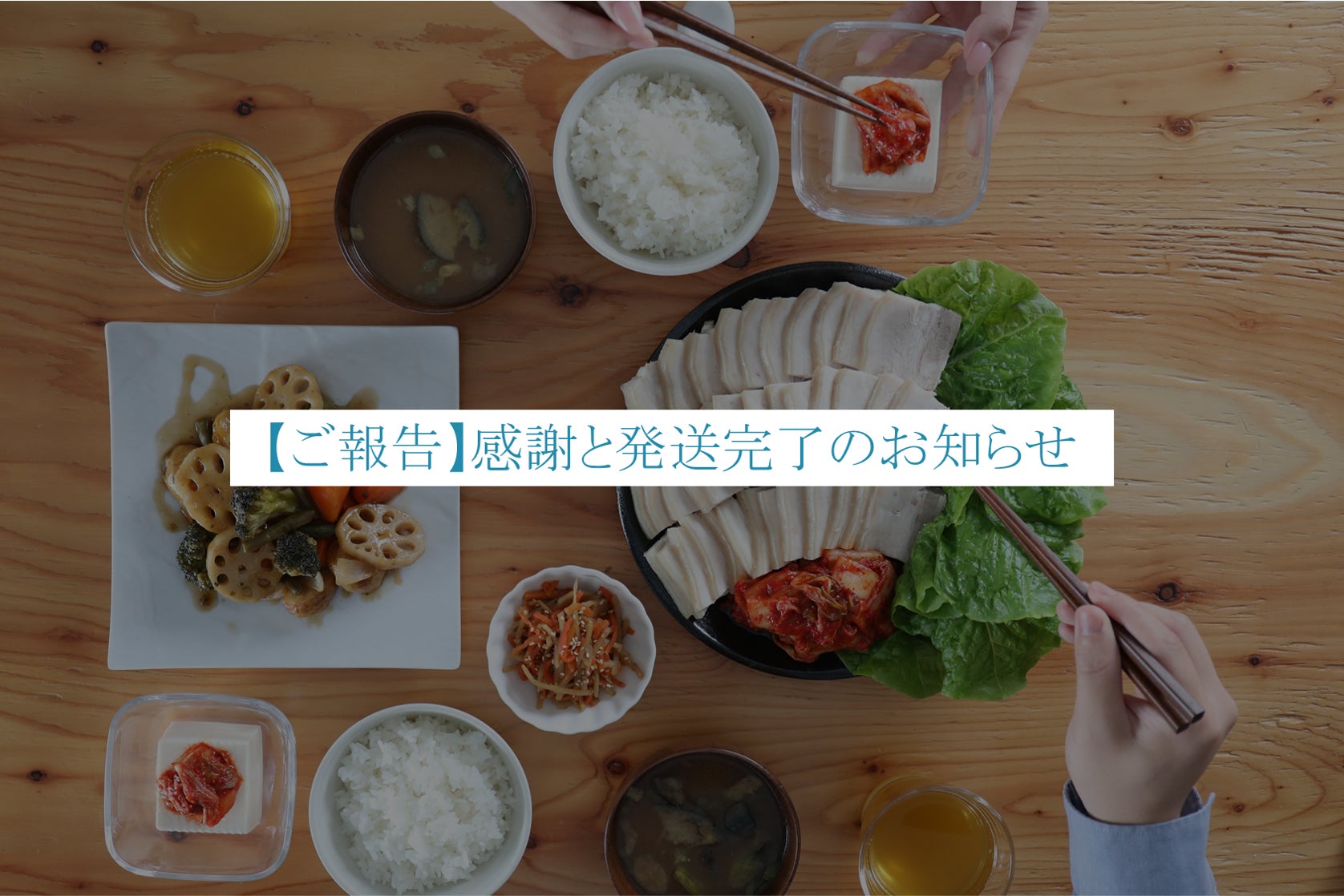 2020/11/04 16:16皆さん、この度は「ぽそんのキムチ」のクラウドファンディングをご支援いただき、本当にありがとうございました!オモニ(母)が漬ける「ぽそんのキムチ」を日本中に届けたい!という一心でこのプロジェクトに挑戦しました。おかげ様でたくさんのご支援を頂き、大幅な目標達成をすることができました。心からお礼申し上げます。9月8日(火)8:00より公開しました本プロジェクトは、開始から約9時間で目標額である500,000円を100%達成し、最終結果は下記の通りになりました。・支援総額1,637,394円 ・支援者数212人 ・達成率327% (目標金額500,000円)本当にありがとうございました!これからも皆様の食卓を彩るため、一生懸命に取り組んでまいります。「ぽそんのキムチ」をどうぞよろしくお願いいたします。<出荷について>すべての出荷を完了致しました。ご不在になっていらっしゃる方には個別にご連絡を差し上げております。わずかですが、ご不在持ち戻りになってしまっている方もいらっしゃいますので、ご注意いただけますと幸いです。転送対応や再出荷など承りますので、お気遣いなくご連絡くださいませ。<最後にご案内です>新サイトリニューアルは少し時間がかかってしまっていまして…、また後日ご案内させていただきます!本当に申し訳ございません!現在運営しているサイトからお買い求めいただくことが可能ですので、もしよろしければご覧くださいませ。↓ロゴマークをクリックしてみてください!↓「ぽそんのキムチ」|本場韓国で生まれたキムチの通販【公式オンラインショップ】本当にありがとうございました!!!「ぽそんのキムチ」代表金 鎮仙(キン ジンソン) もっと見る