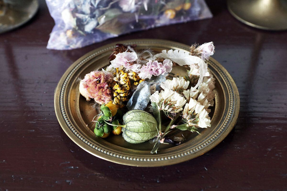 こちらは、今回のFesのインスタレーションを担当する、Atelier ANORM(アトリエアノーム)のRieさんが、Fesのテーマ「Floral Garden」に合わせて色をブレンドしたオリジナルポプリと、専門の調香師の方が「Floral Garden」のイメージで天然精油を調香したオリジナル精油が付くという、大変贅沢なセットです。