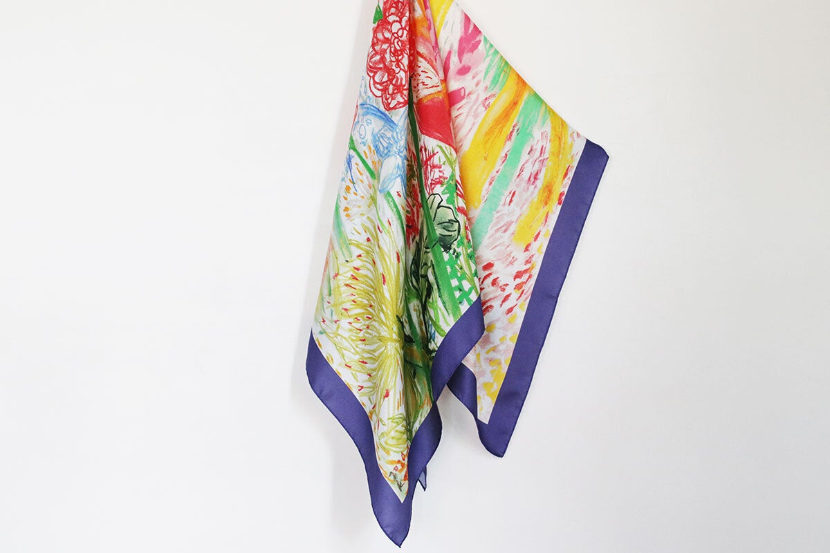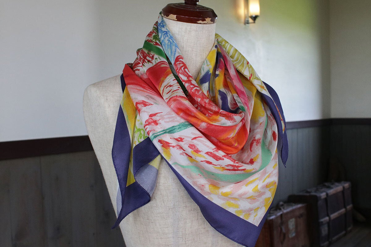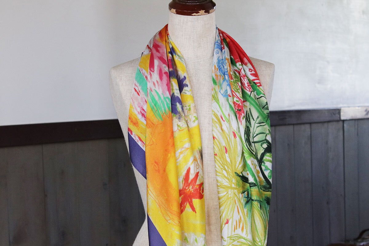 オリジナルデザインの大判シルクスカーフです。