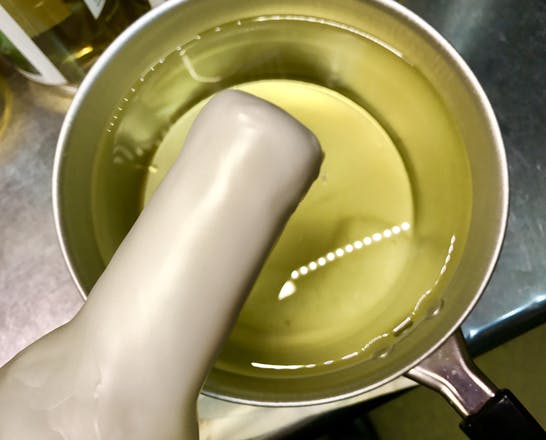 ただいま、海底熟成先行試験用の蝋封作業中でございます((。_。(゚д゚ )ペコ