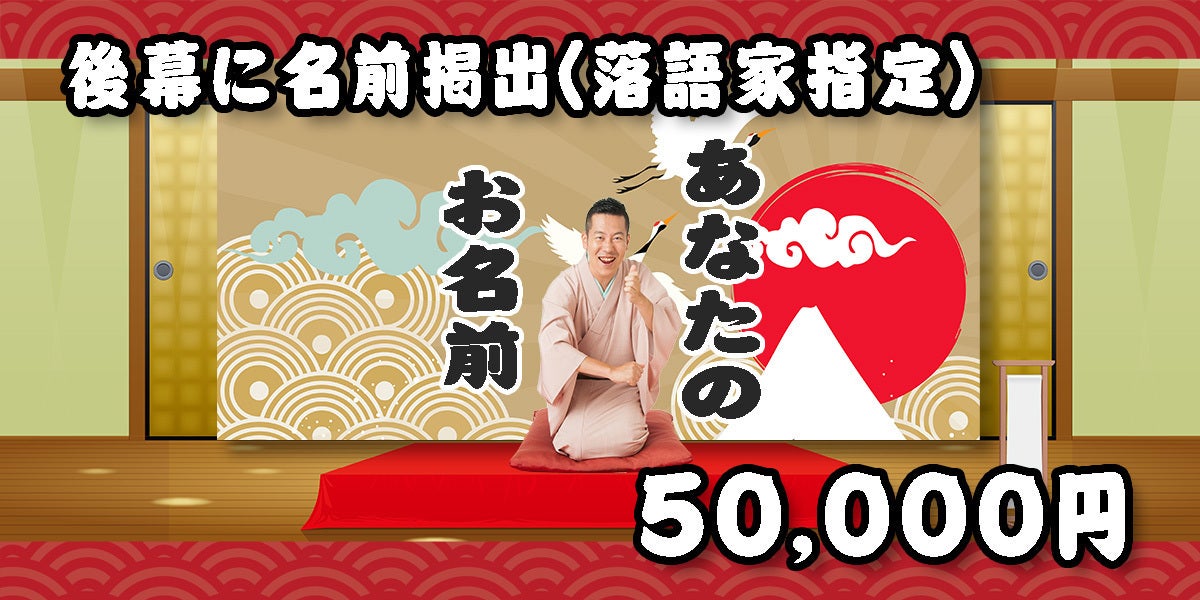 高座中の後幕に支援者としてお名前を掲載いたします。各落語家のイメージに合わせた後幕にあなたのお名前を掲出します。掲出したい落語家のお名前を選択してください。