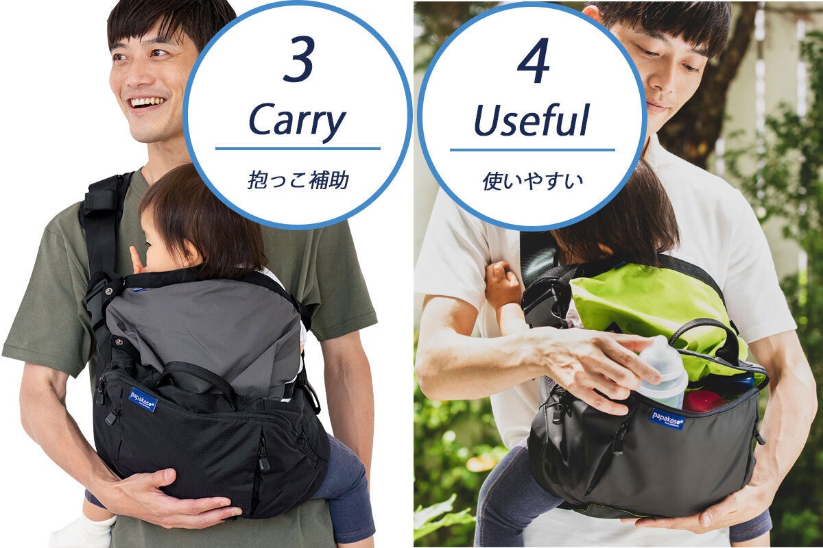 「パパバッグキャリアーモデル」4つの特長(特許出願中)