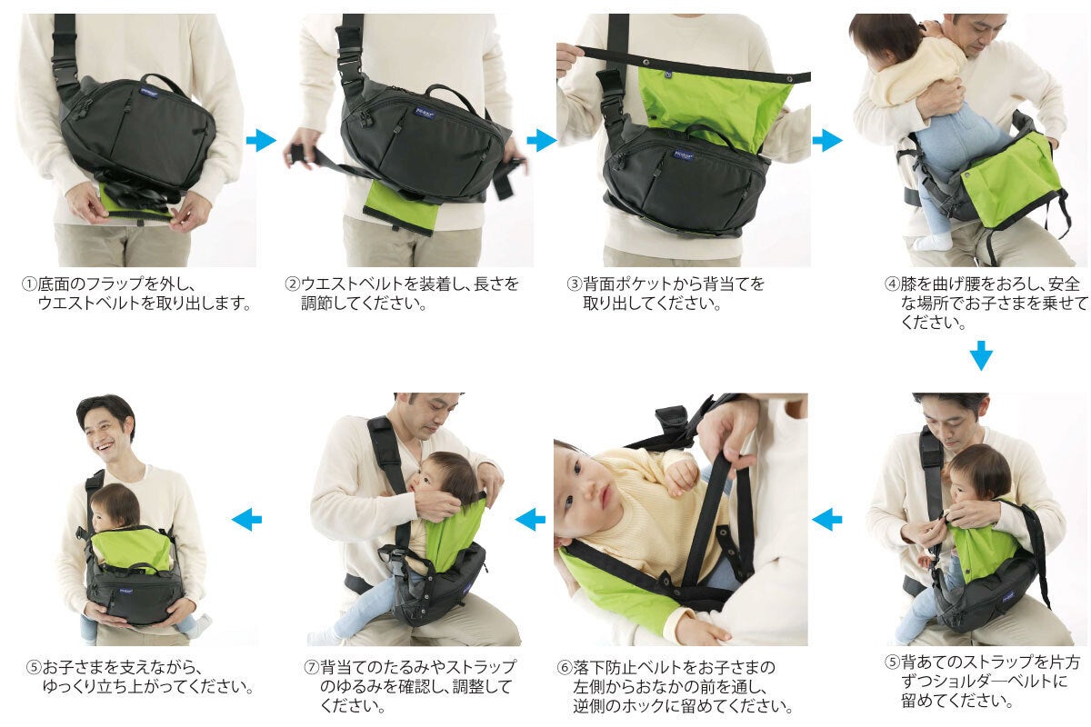 まるで子育てバッグとは思えない。スタイリッシュなバッグが抱っこ補助具へ。