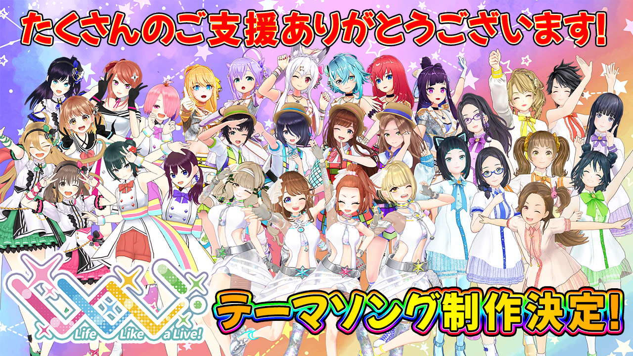 「みんなで作る!Life Like a Live!テーマソングプロジェクト」のオーナーでございます!皆様、沢山のご支援誠にありがとうございます!開始5分で当初の目標を達成した時は、メンバーと一緒に( ゚д゚)ポカーンとしておりました…本当にありがとうございます!素敵なテーマソングを制作させていただきます!その後もご支援いただき、ありがたいことに既に2つのストレッチゴールを達成させていただき、テーマソングの「各ユニット(まりなす(仮)等)バージョンの制作」、「MVの制作」が決定いたしました!現在、新たなストレッチゴールや追加支援プランを検討しておりますので、今しばらくお待ちいただけますと幸いです!Life Like a Live!の公式Twitterにて最新情報を更新しておりますので、そちらも是非チェックしてみてください!(https://twitter.com/LifeLikeaLive )それでは、引き続きよろしくお願いいたします!
