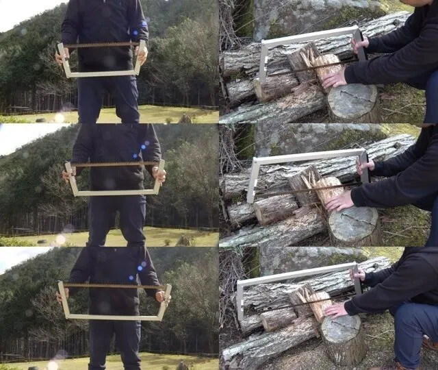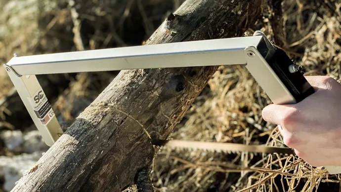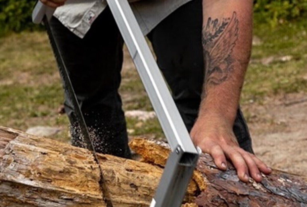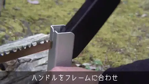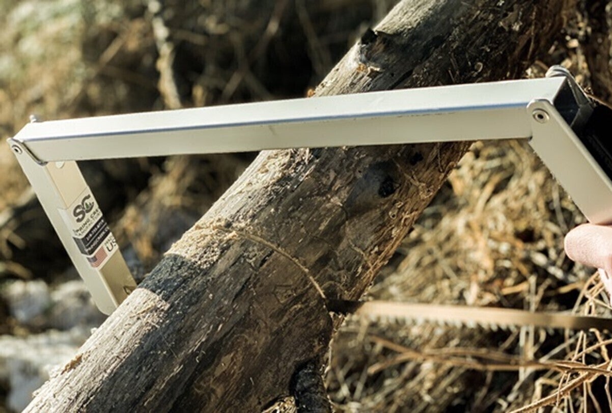 アメリカンスタイルバックソーで収納時はコンパクトかつ洗練されたデザインでキャンプサイトに置きたくなります。ブッシュクラフトで古くから使用されているバックソー。