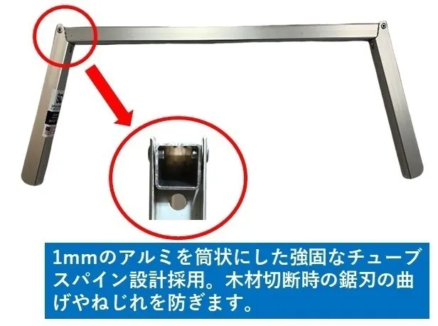 切断ストロークが長くなると心配になるのが鋸刃のねじれや曲げへの強度。「Tuff Camp Saw(タフ・キャンプ・ソー)」は肉厚1mmのアルミ製のチューブスパイン設計で、フレームの強度アップを実現しました。