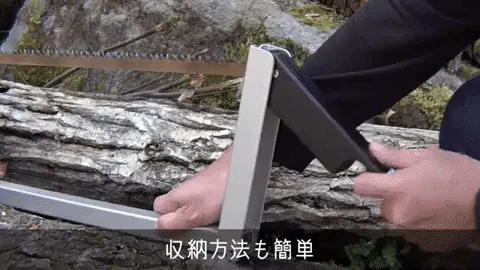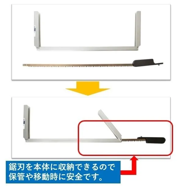 折りたたみ式でチューブスパインの中に鋸刃を収納することが出来ます。このことにより移動の時や保管時に鋸刃を安全に保護することが出来ます。