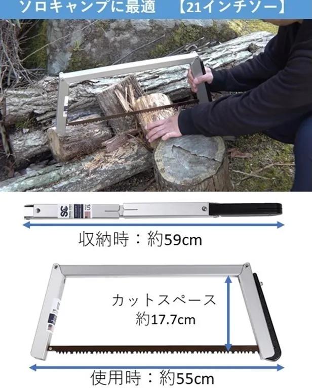 ソロキャンプにも対応できる21インチソー(約53cm)
