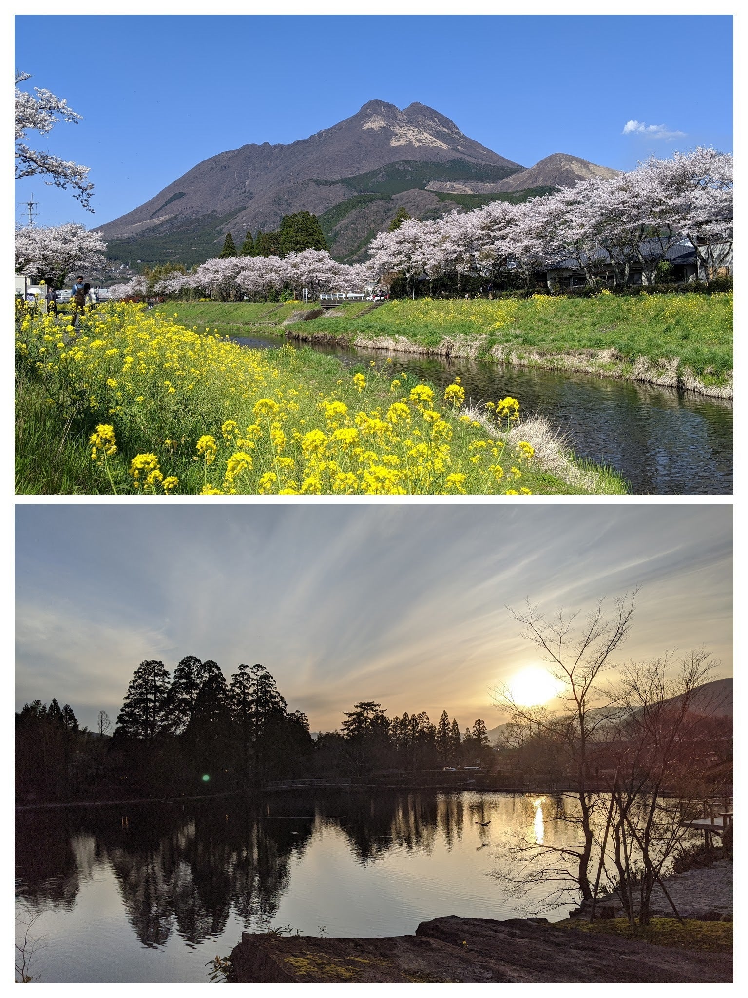 上 由布岳 下 金鱗湖の夕日
