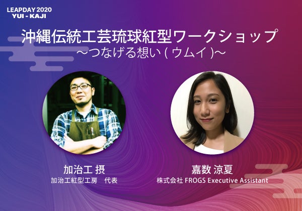 紅型(びんがた)とは、沖縄を代表する伝統的な染色技法の一つで、その起源は古く、13世紀~14世紀頃ともいわれています。今回は沖縄の子どもたち向けに紅型ワークショップを開催し、その様子をライブ配信します。講師は、2015年に独立して加治工紅型を設立した加治工摂さん。伝統を大切にする想いと、現代に合わせて変化していく柔軟さどちらも大切にしている加治工さんに、「紅型の歴史」「伝統工芸の発信」などについて語っていただきます。