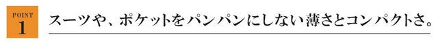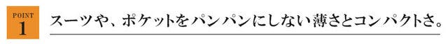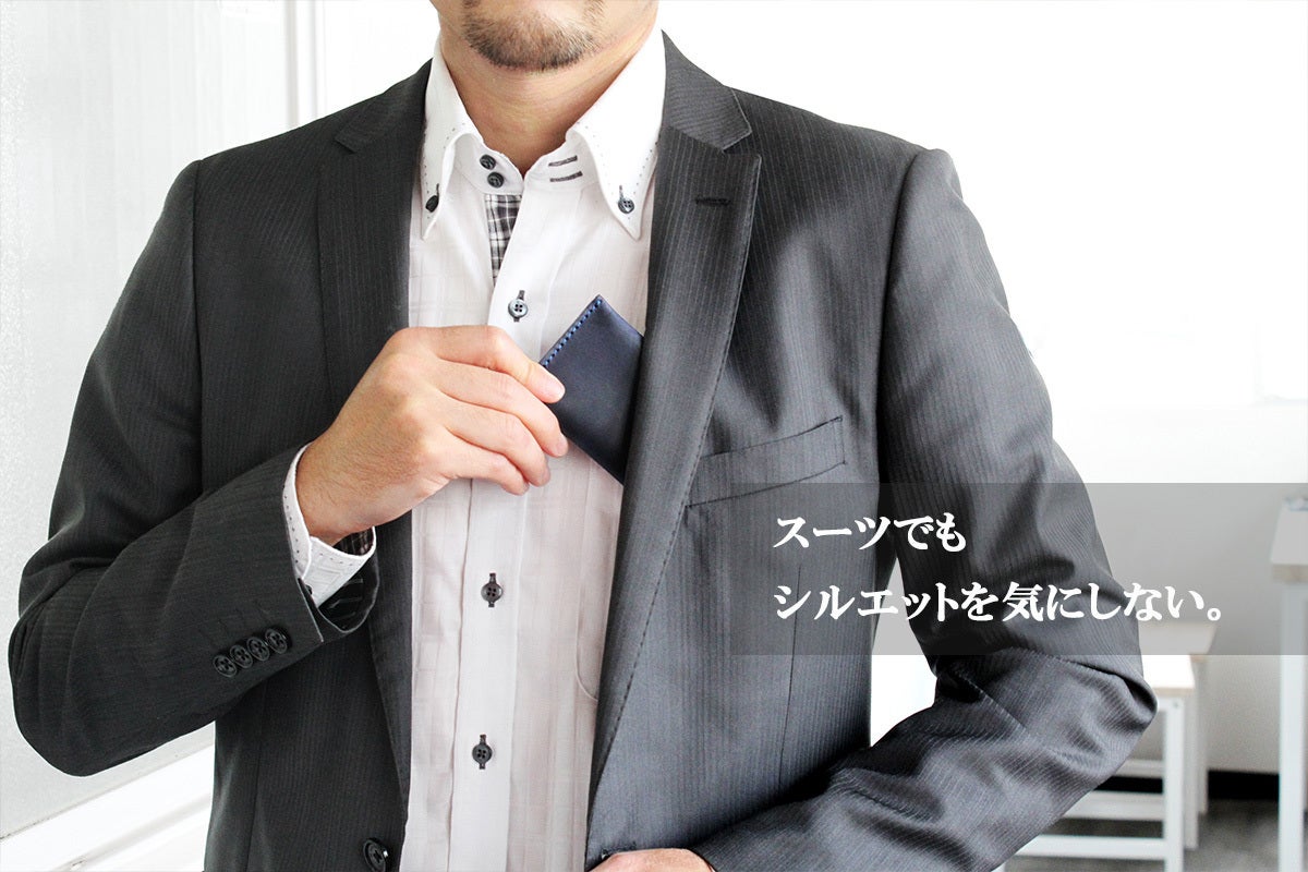 薄さを極めた事でスーツでも普段着でもポケットのシルエットを気にせず持ち運ぶことができるようになりました。