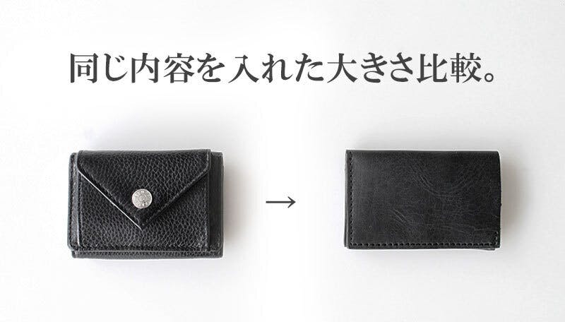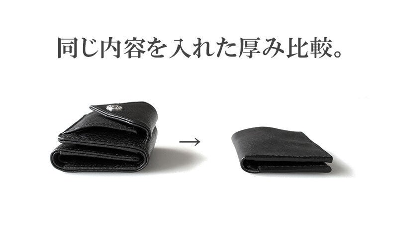 小銭入れを省く事で同じ内容のものを入れたお財布でもここまでさらに小さくすることができました。